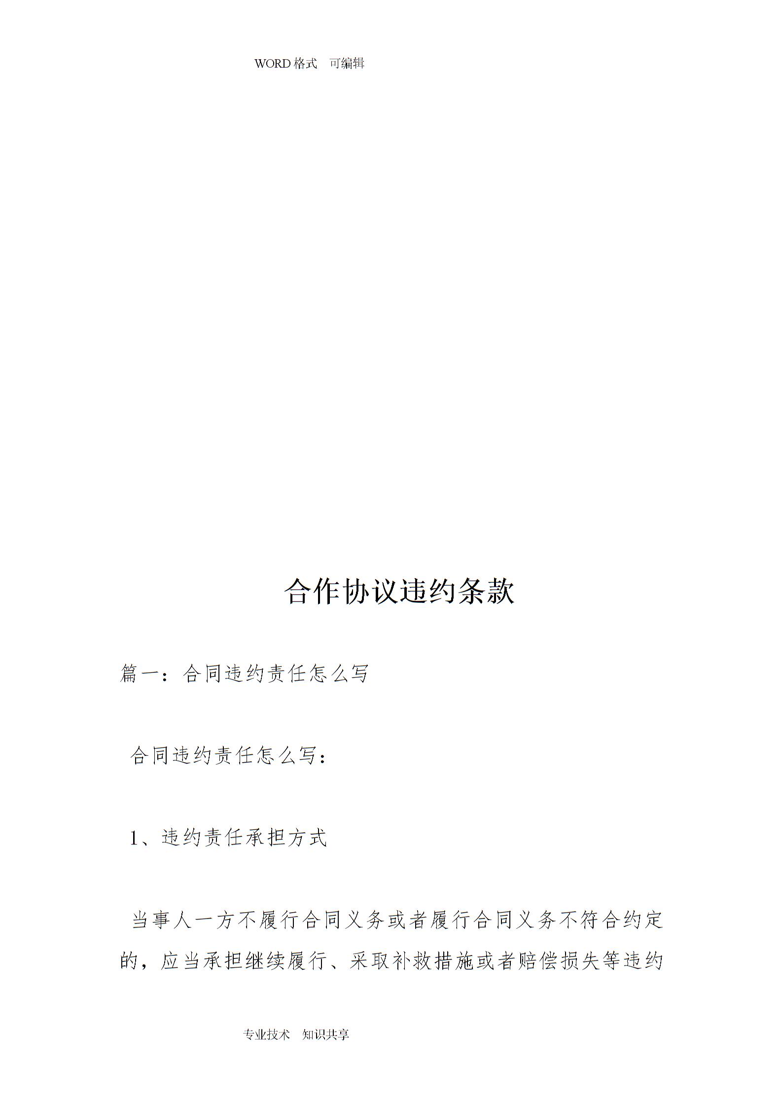 合作协议书违约条款