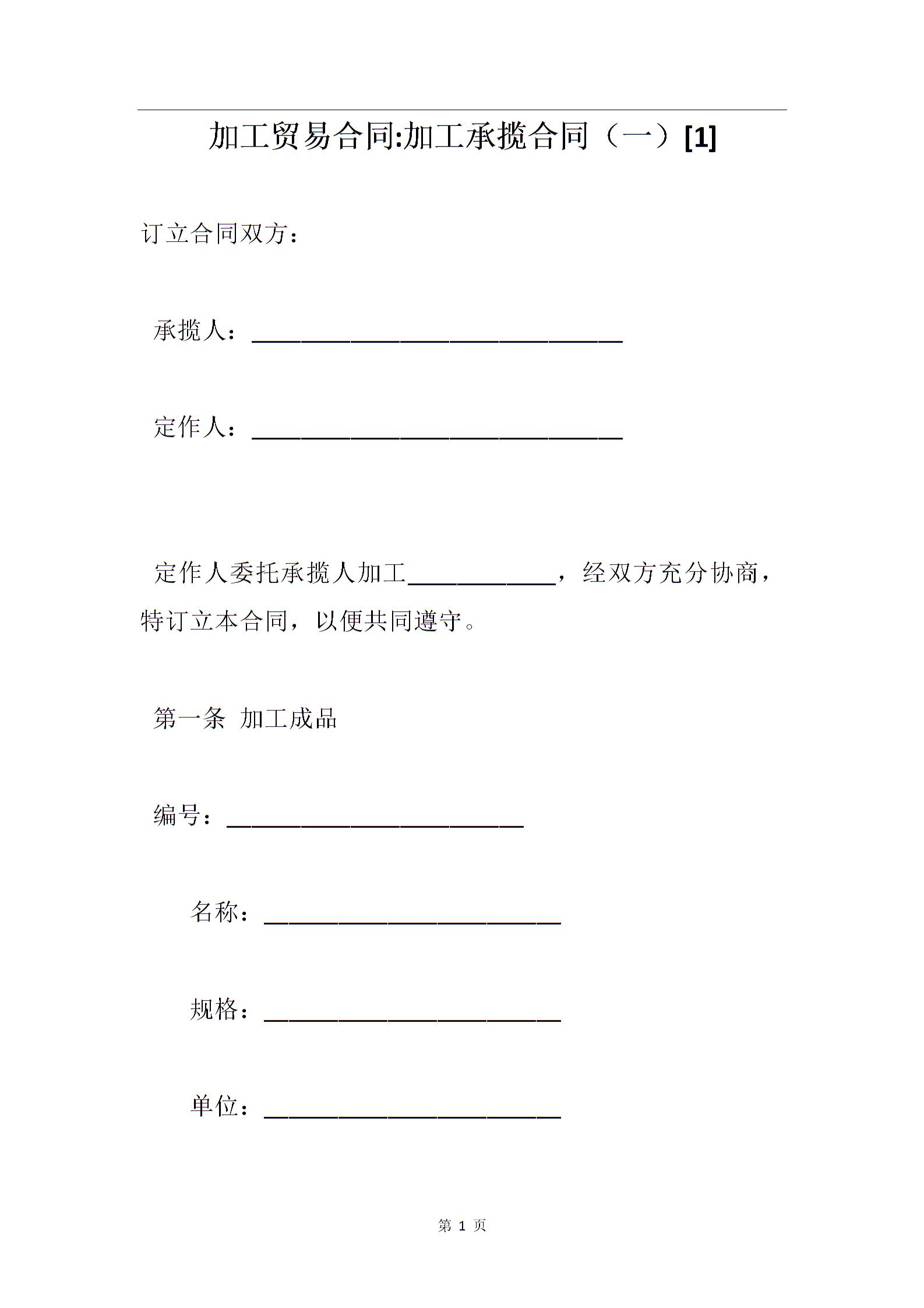 加工贸易合同加工、订货合同