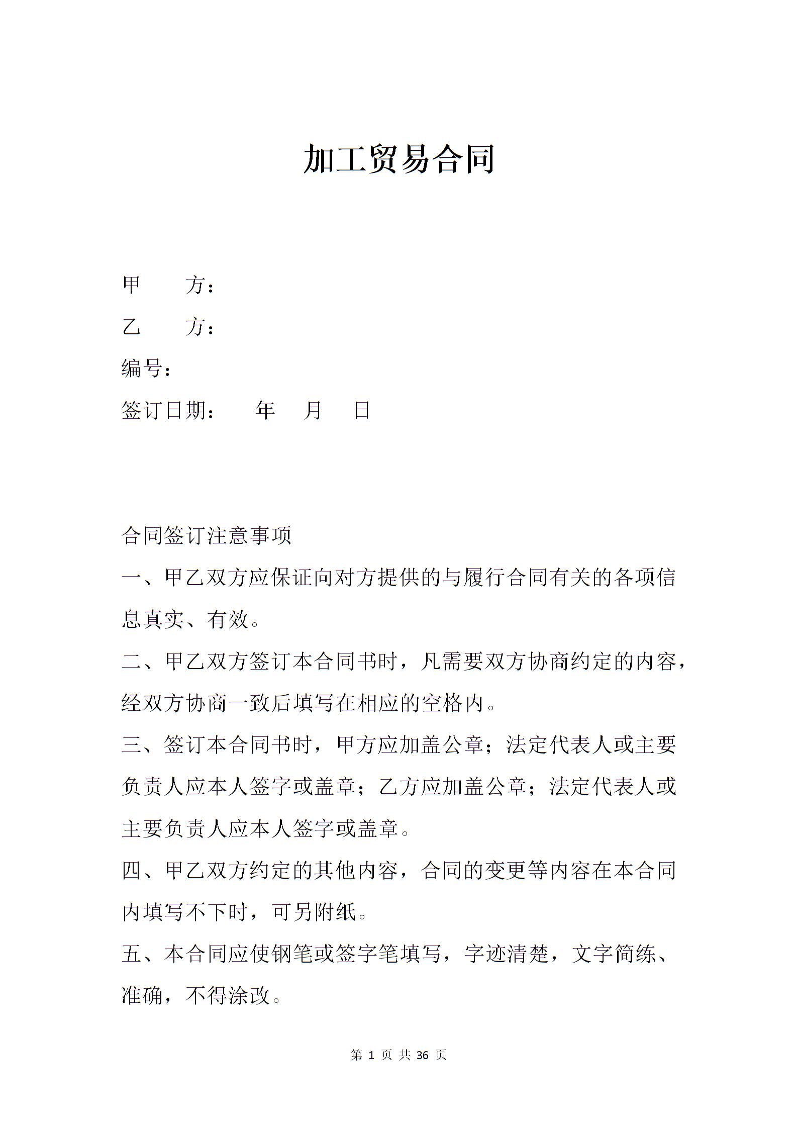 加工贸易合同加工、订货合同