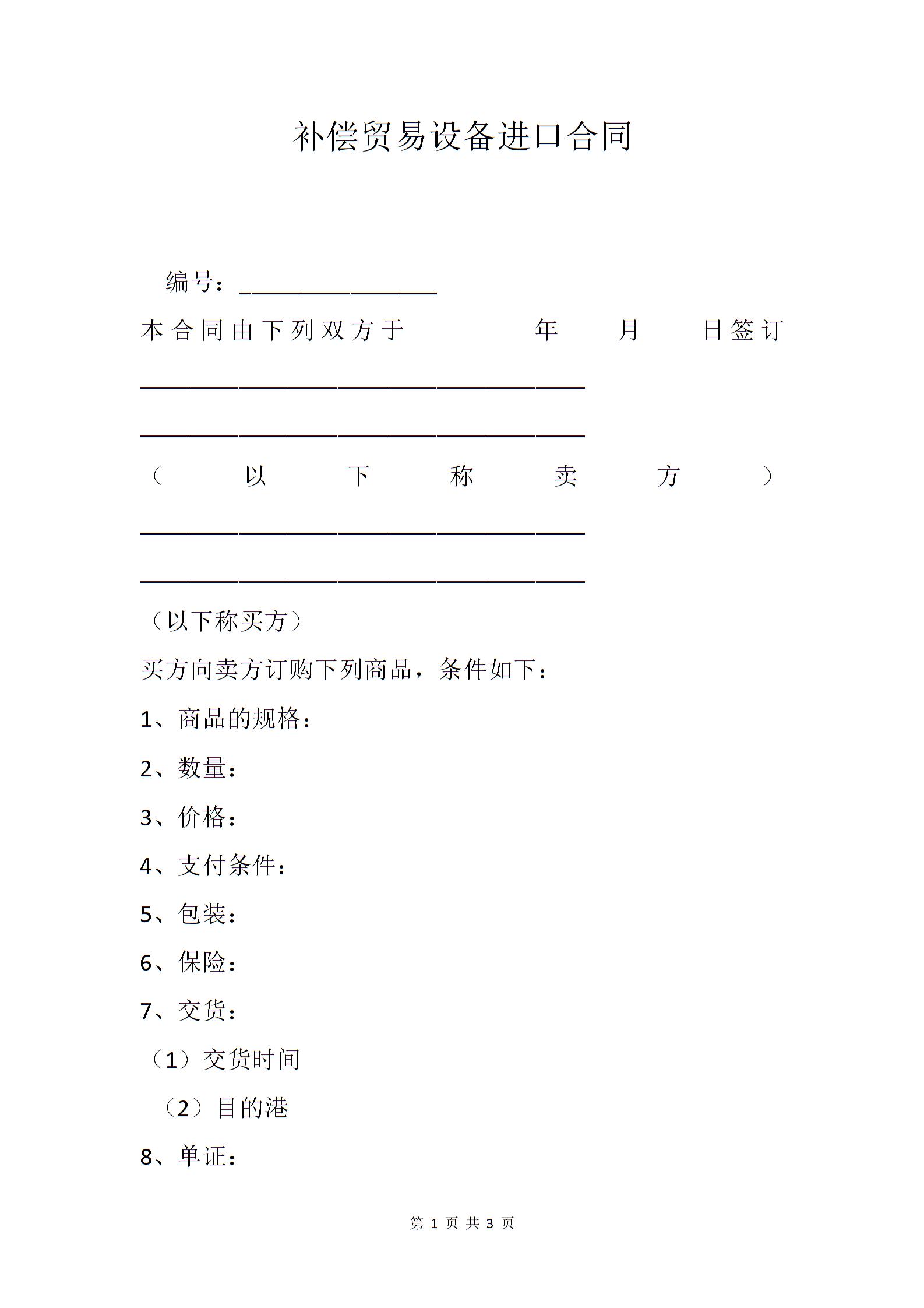 补偿贸易设备进口合同
