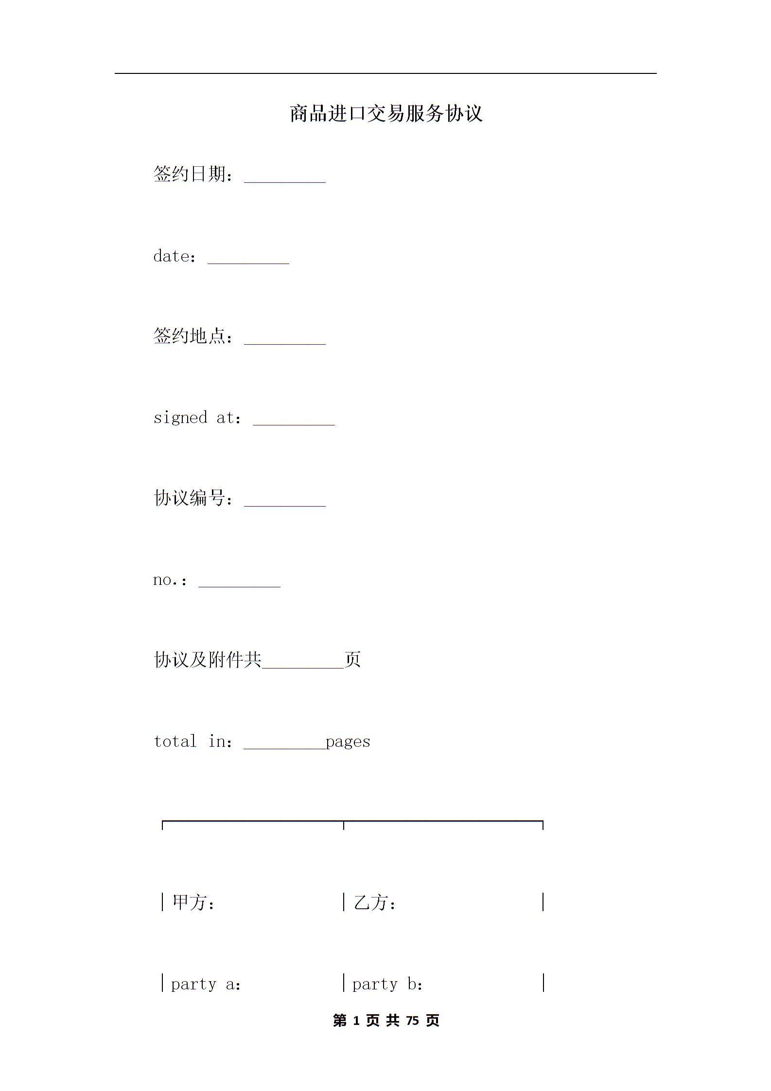 商品进口交易服务协议
