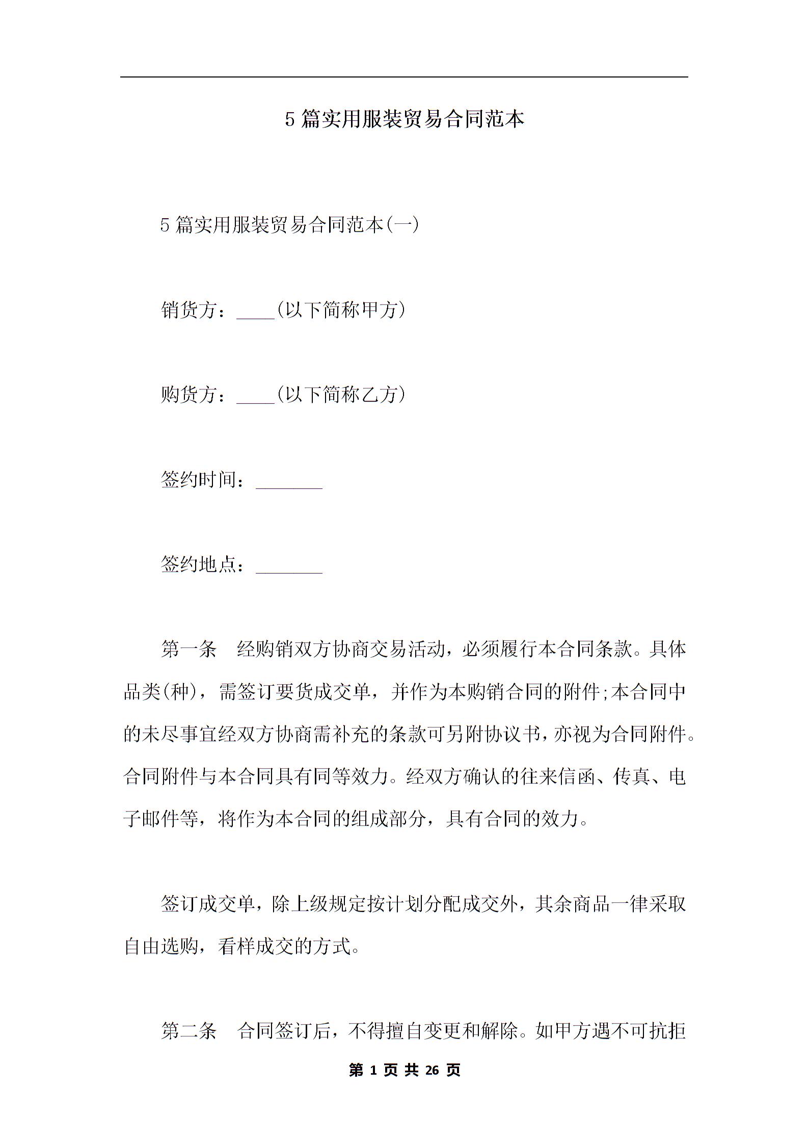 5篇实用服装贸易合同范本