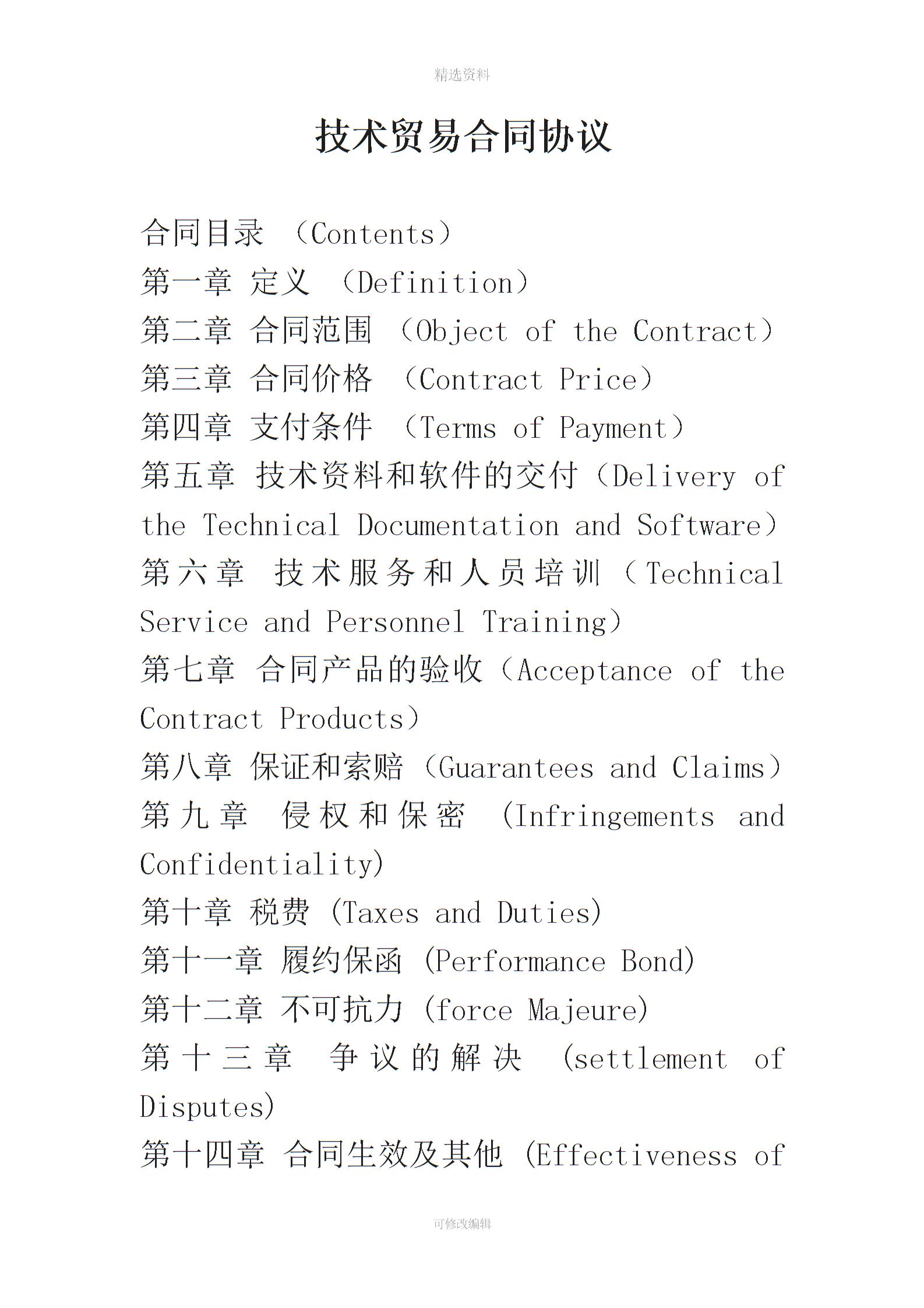 技术贸易合同协议