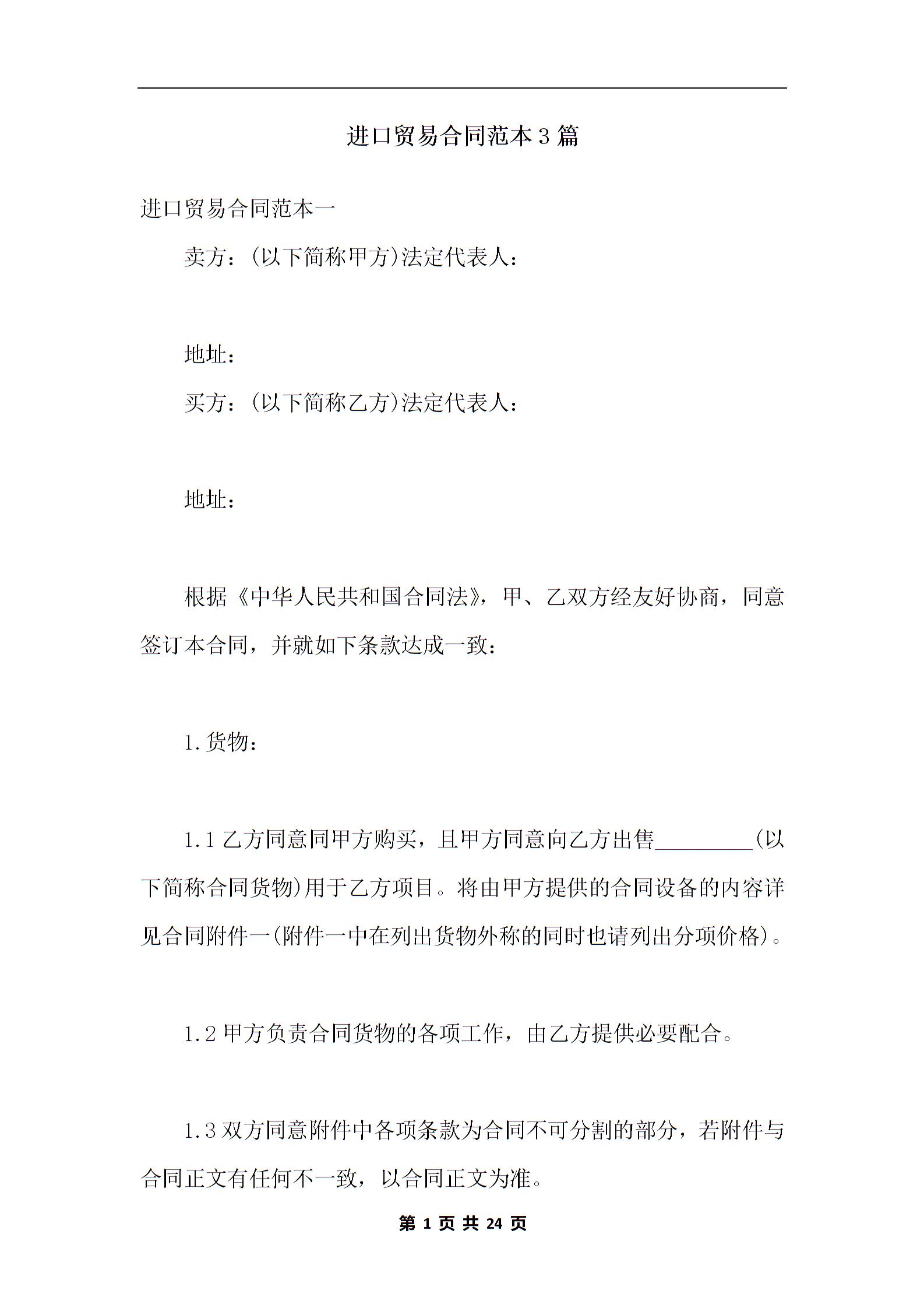 进口贸易合同范本3篇