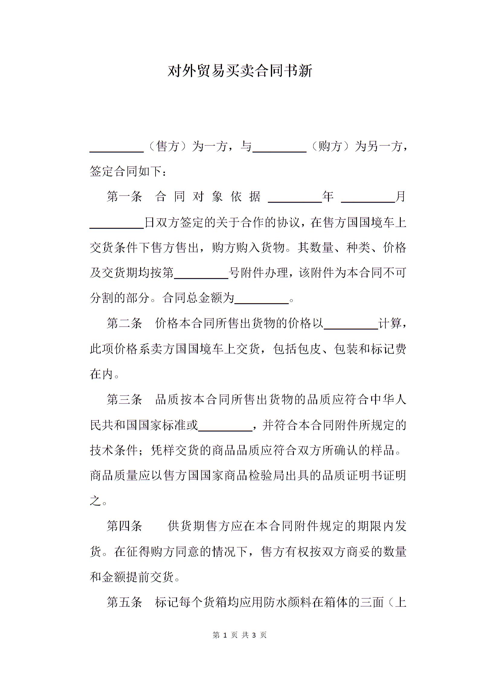 对外贸易买卖合同书新