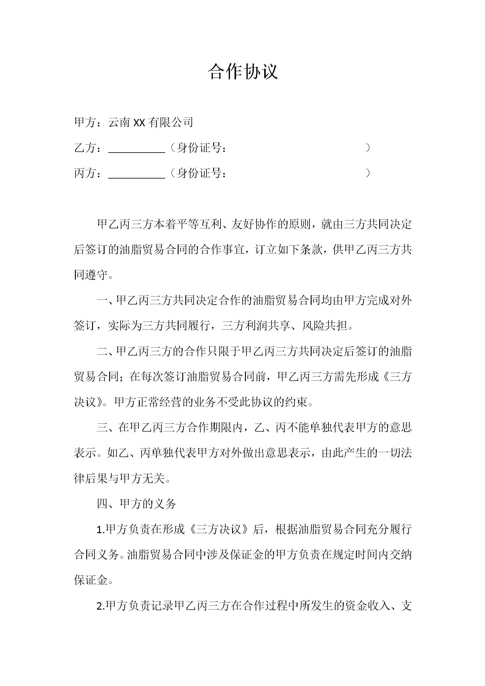 更多合作协议下载