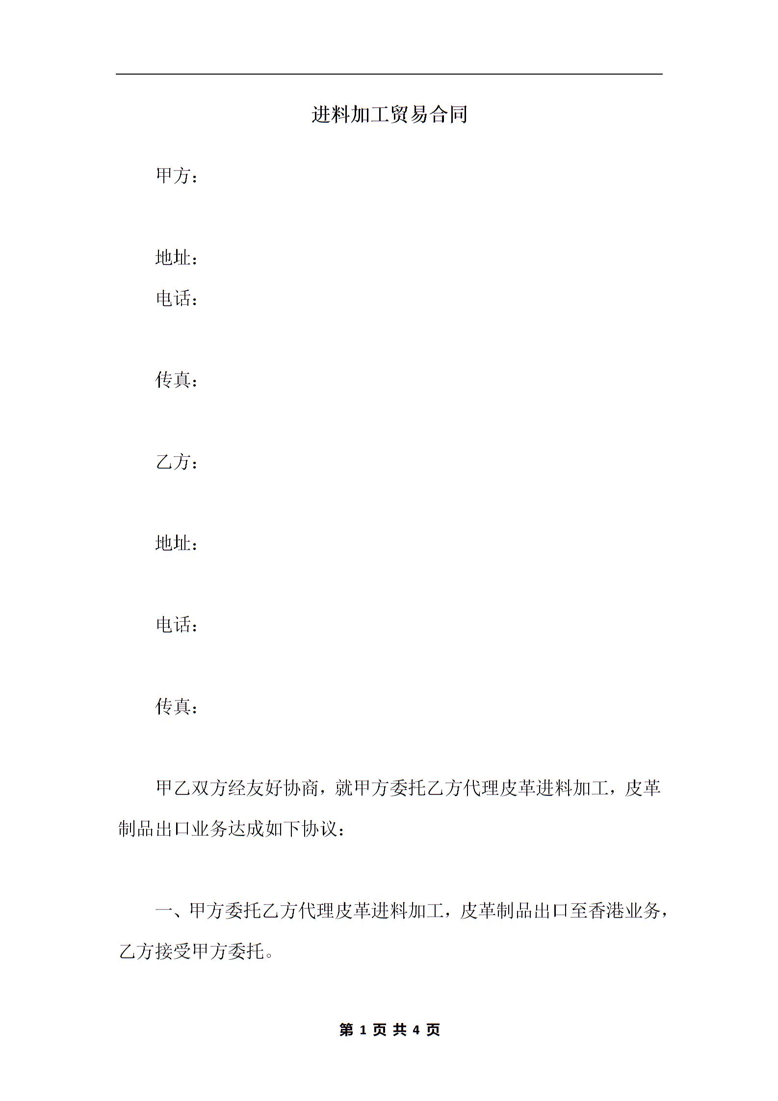加工贸易合同简单范本