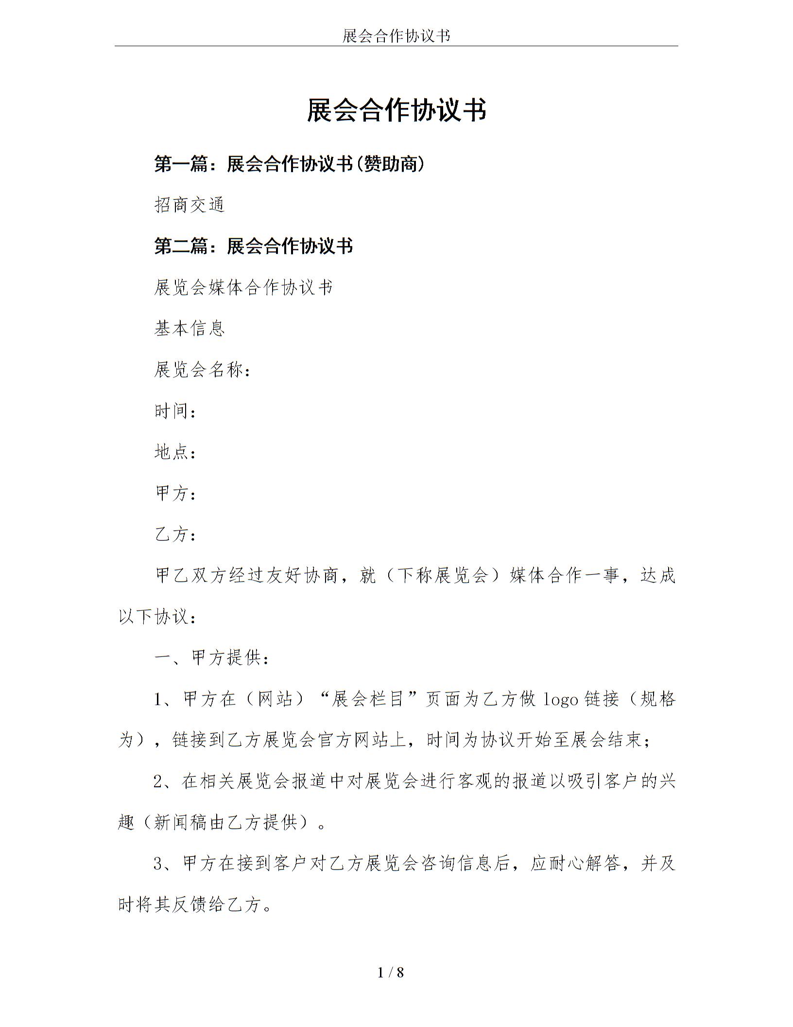 展会合作协议书