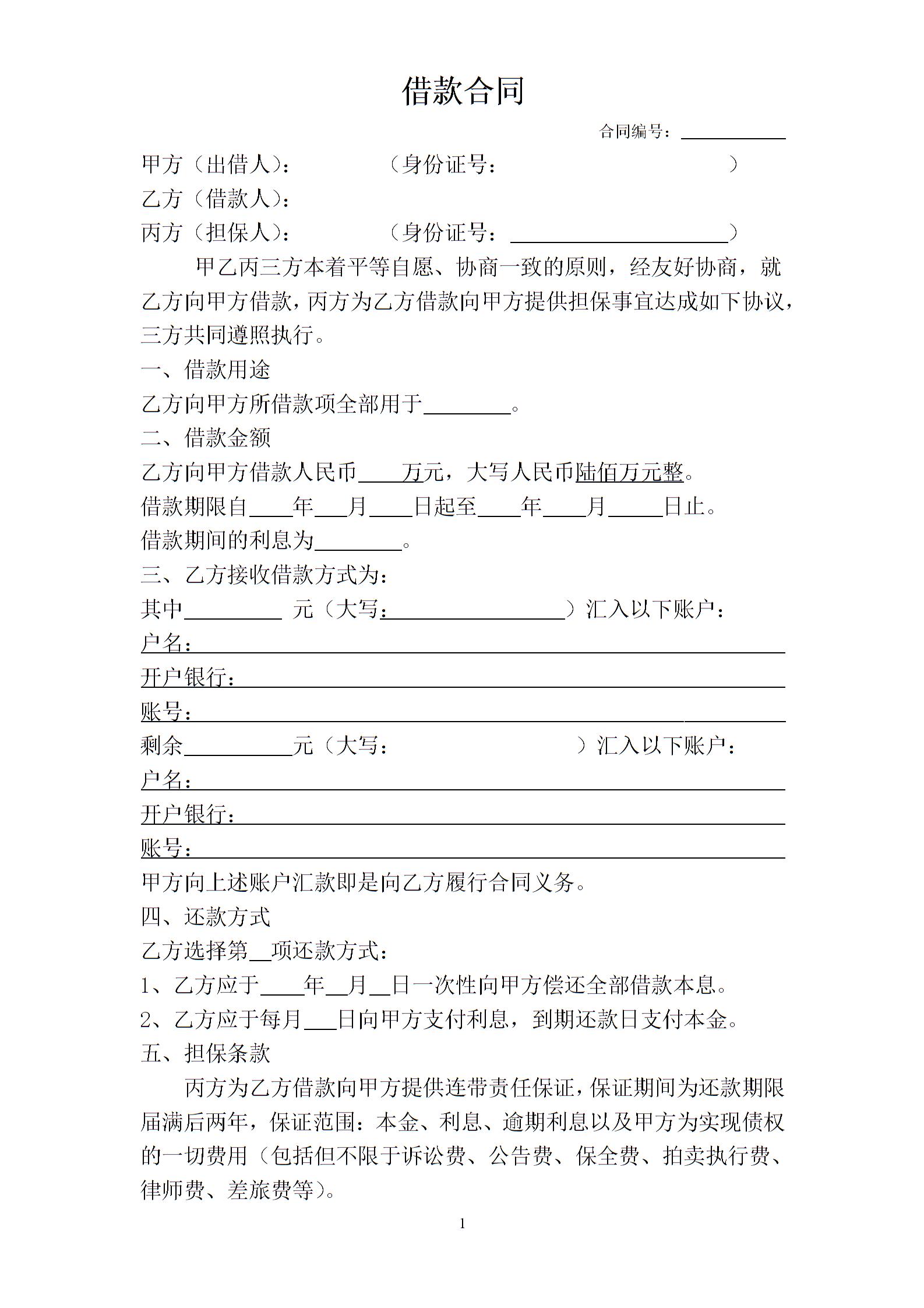 借款合同模板