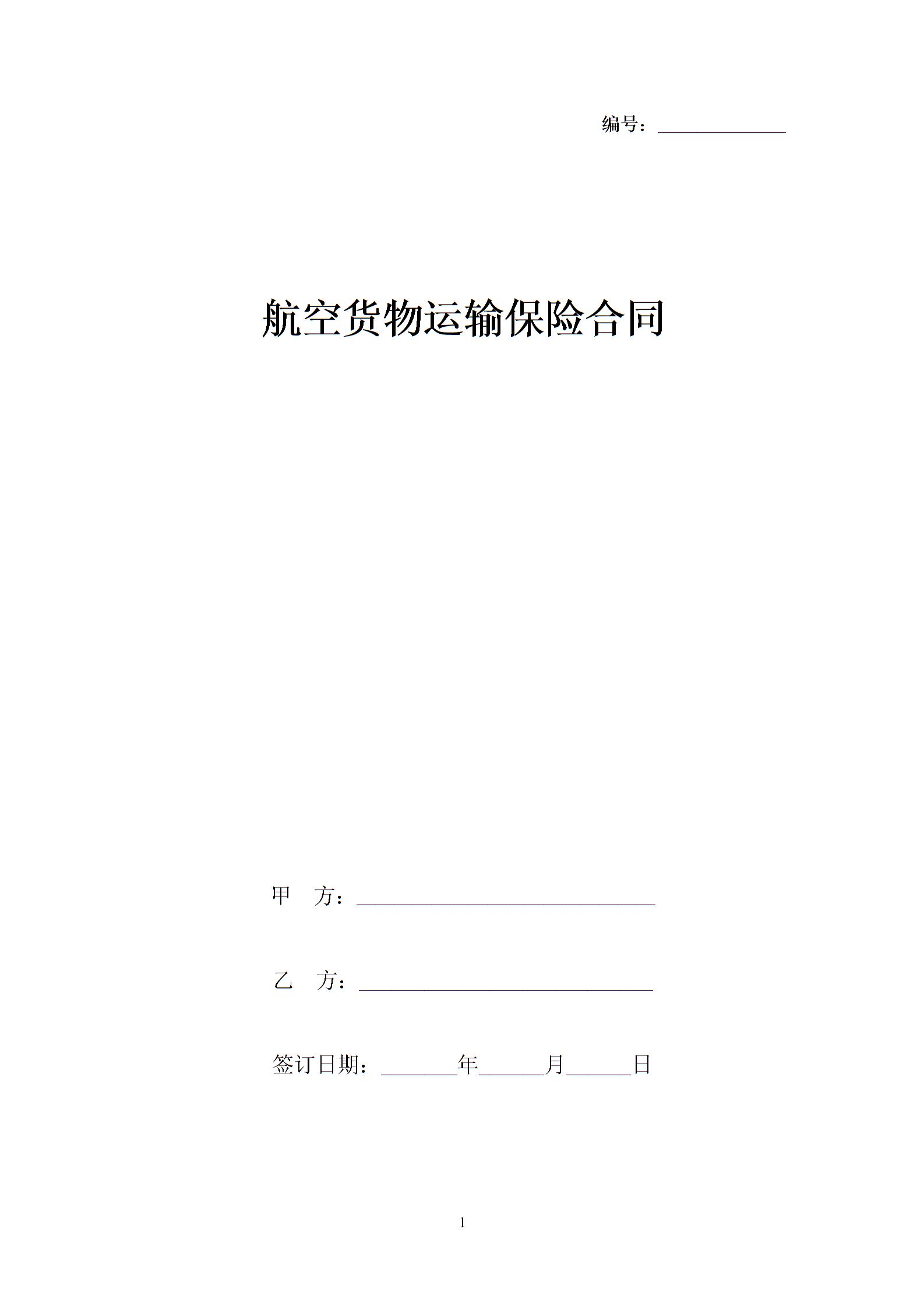 航空货物运输保险合同协议书范本