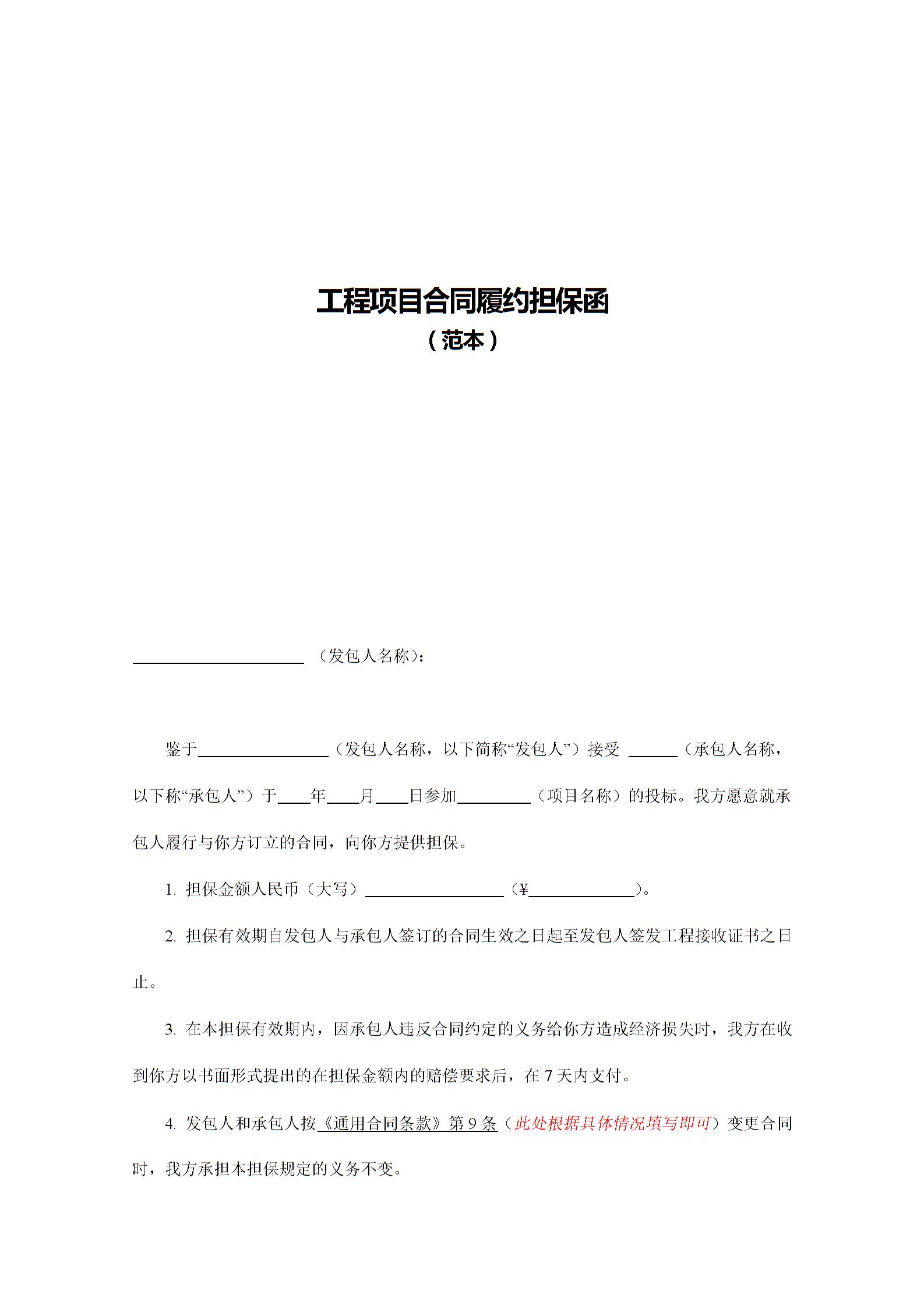 工程项目合同履约担保函