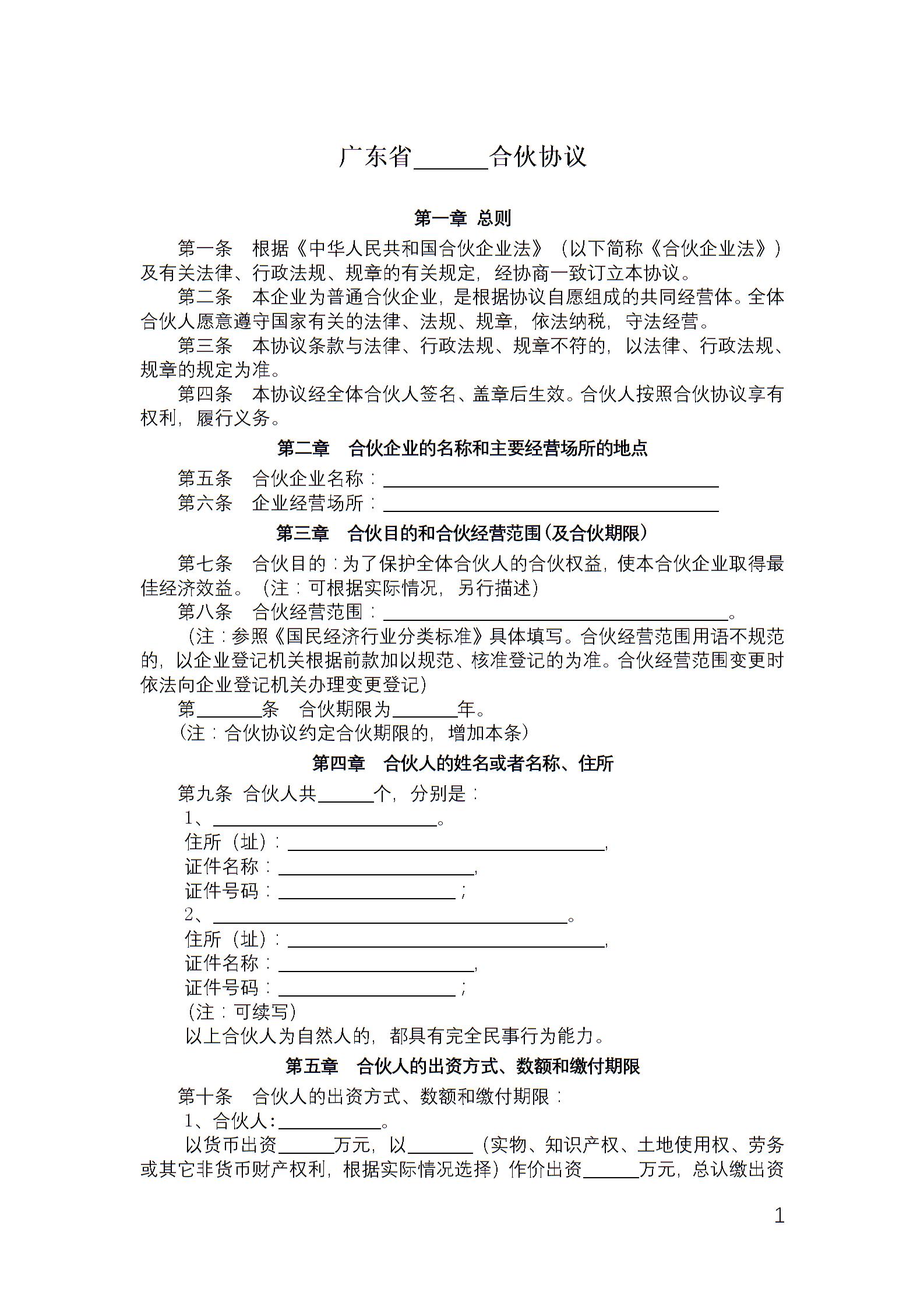 广东省合伙协议
