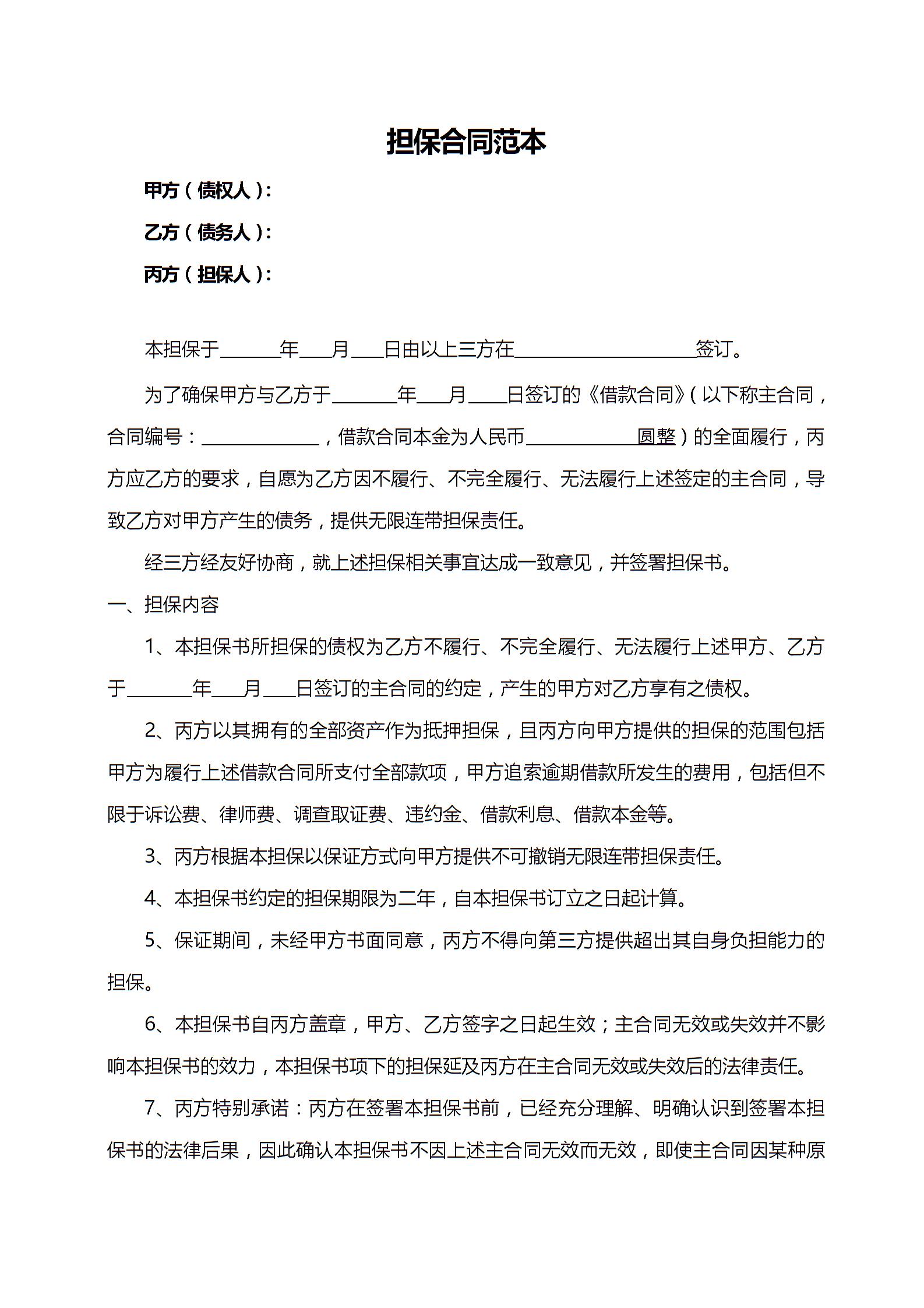 担保合同模板
