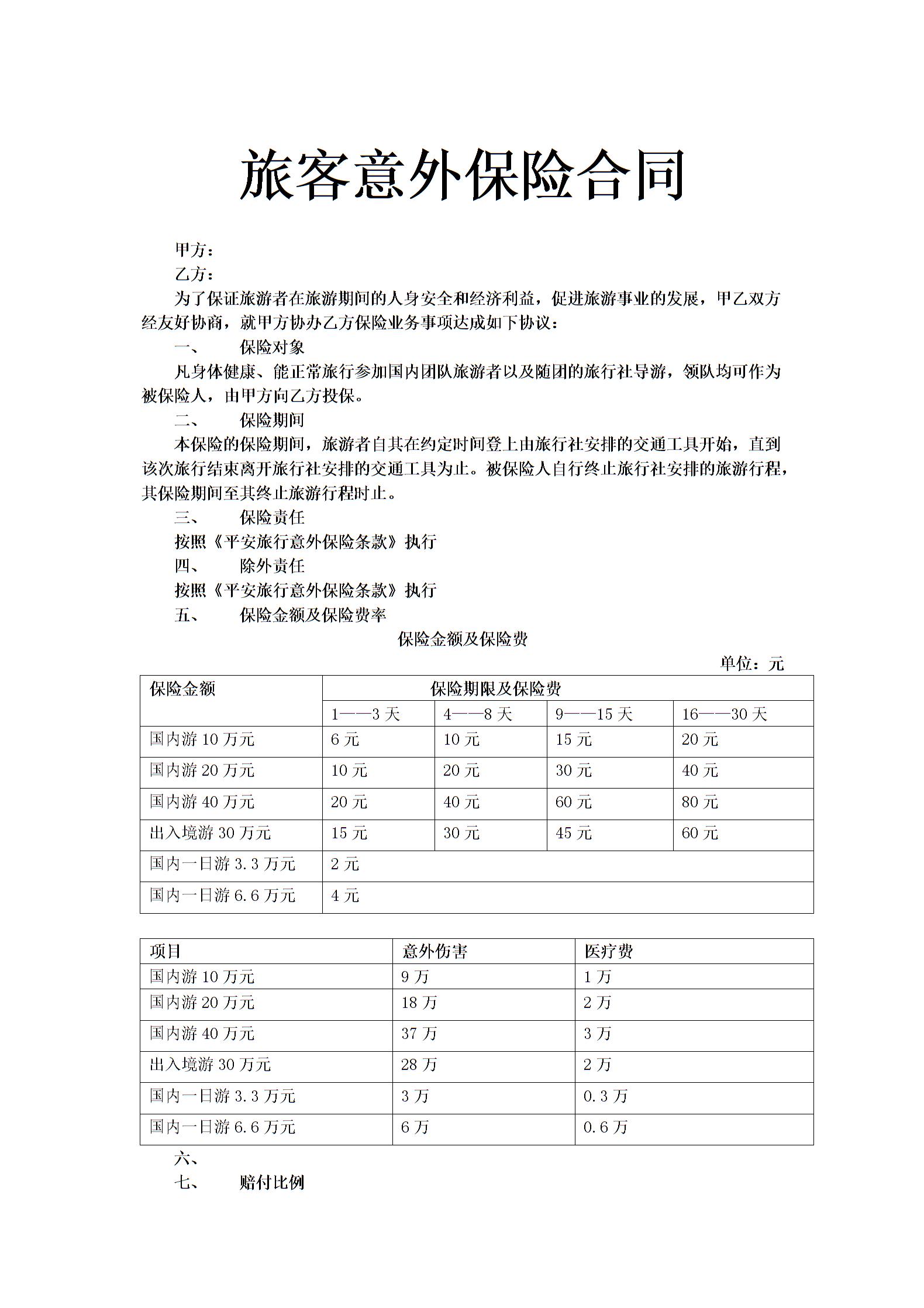 旅客意外保险合同