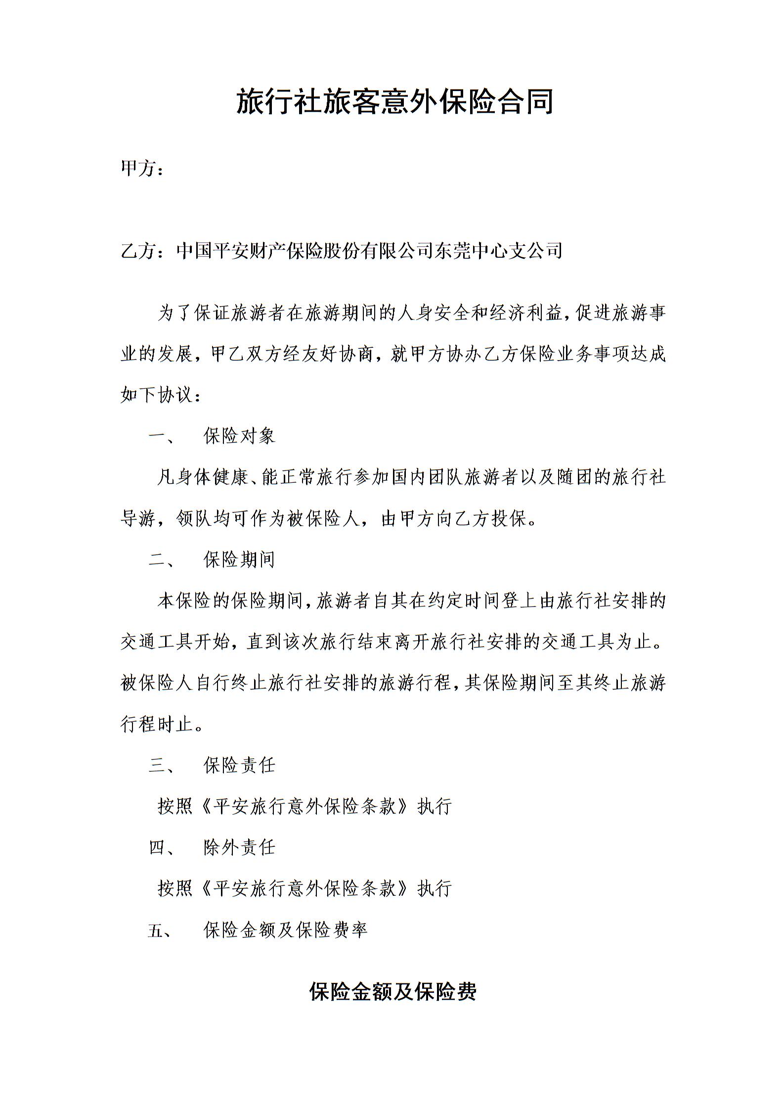 旅行社旅客意外保险合同