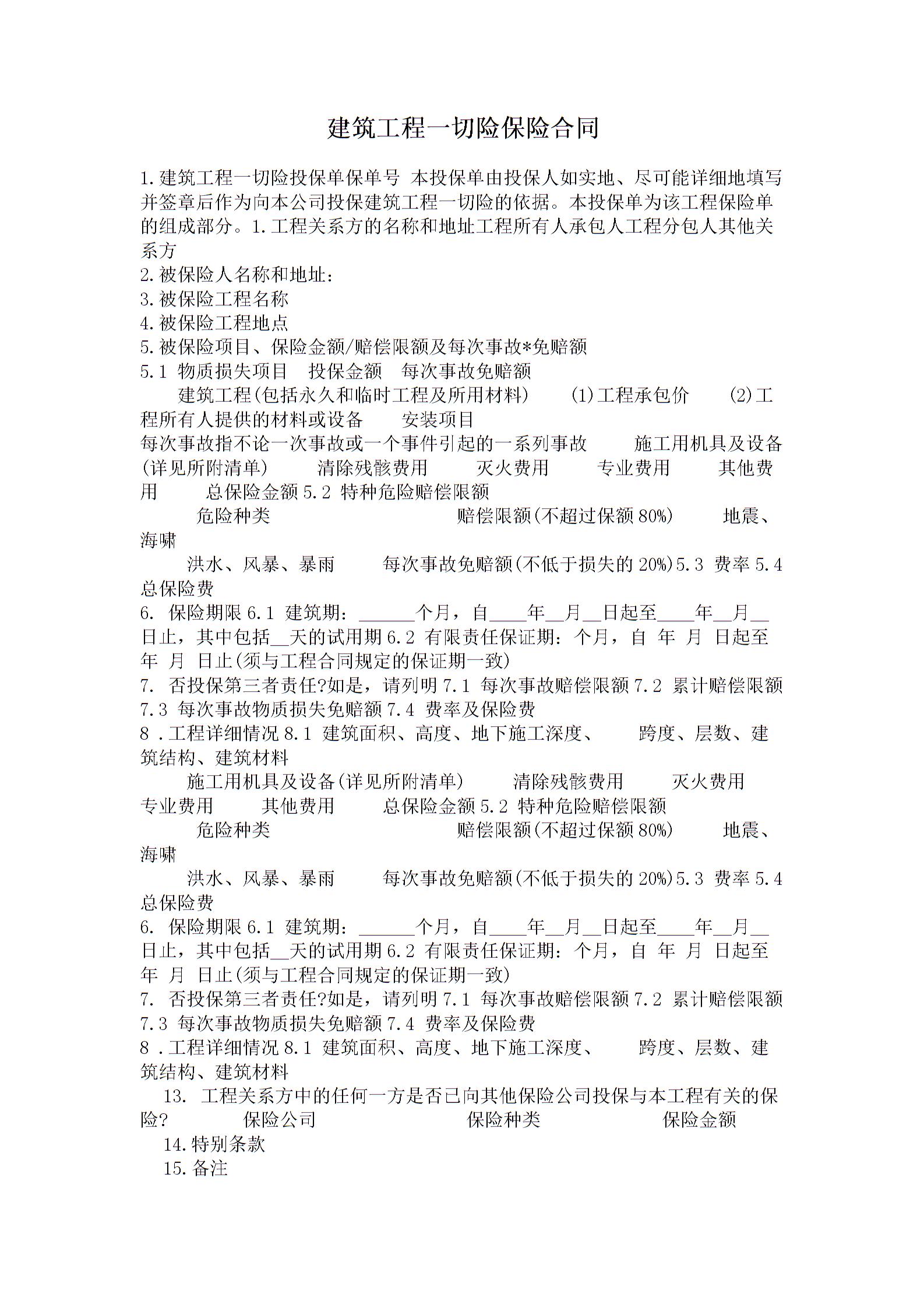 建筑工程一切险保险合同