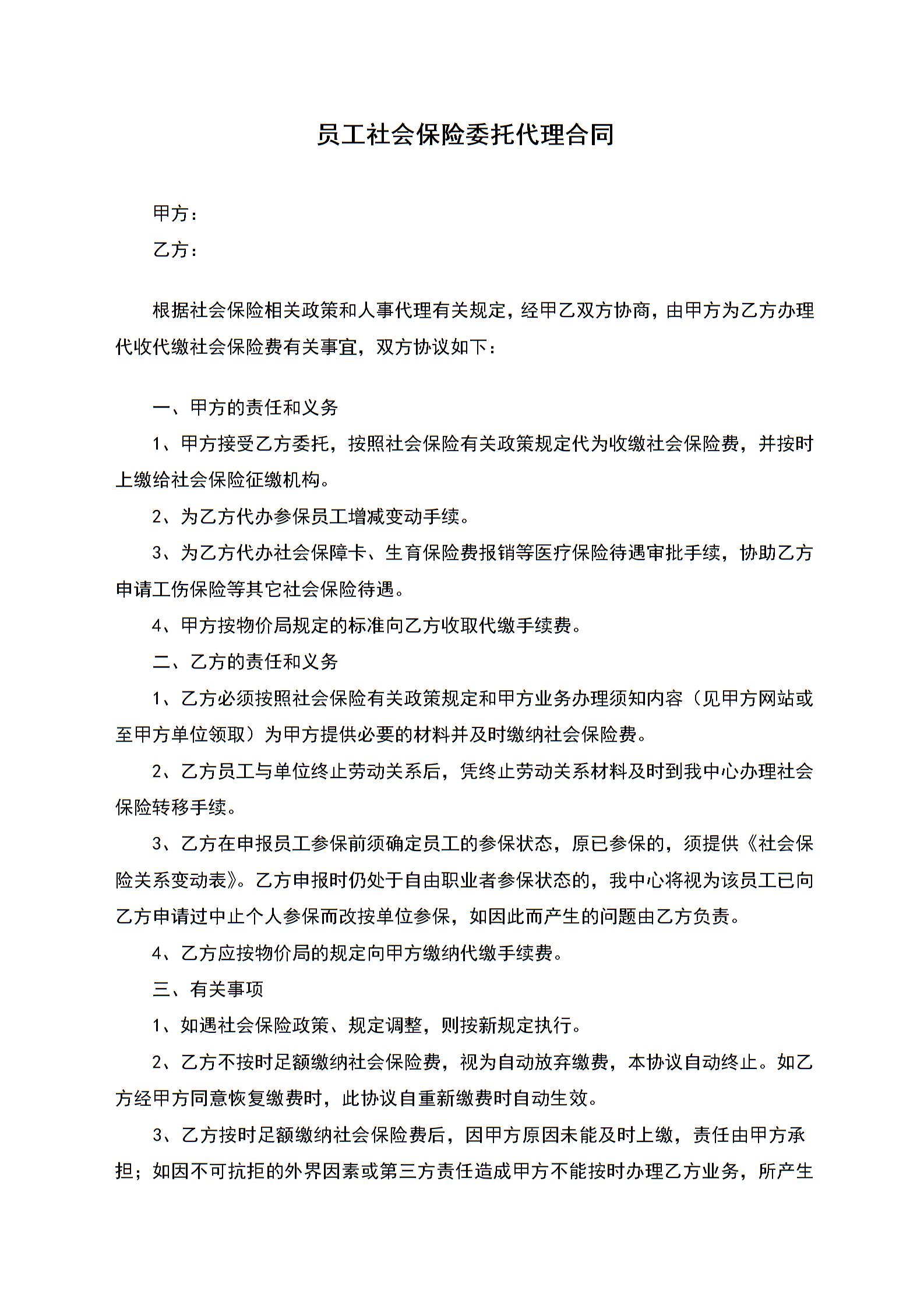 员工社会保险委托代理合同