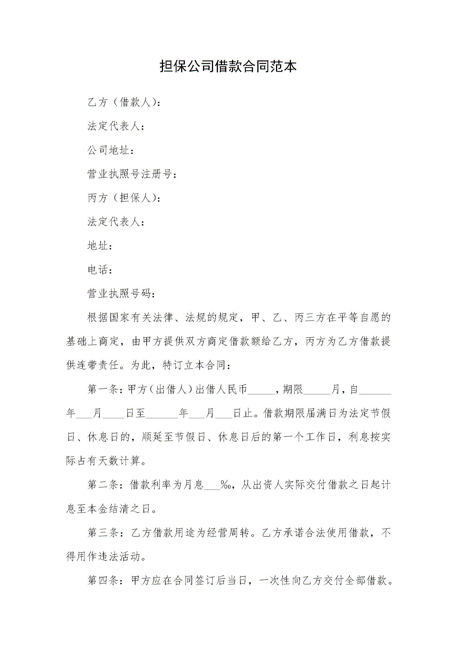 担保公司借款合同范本