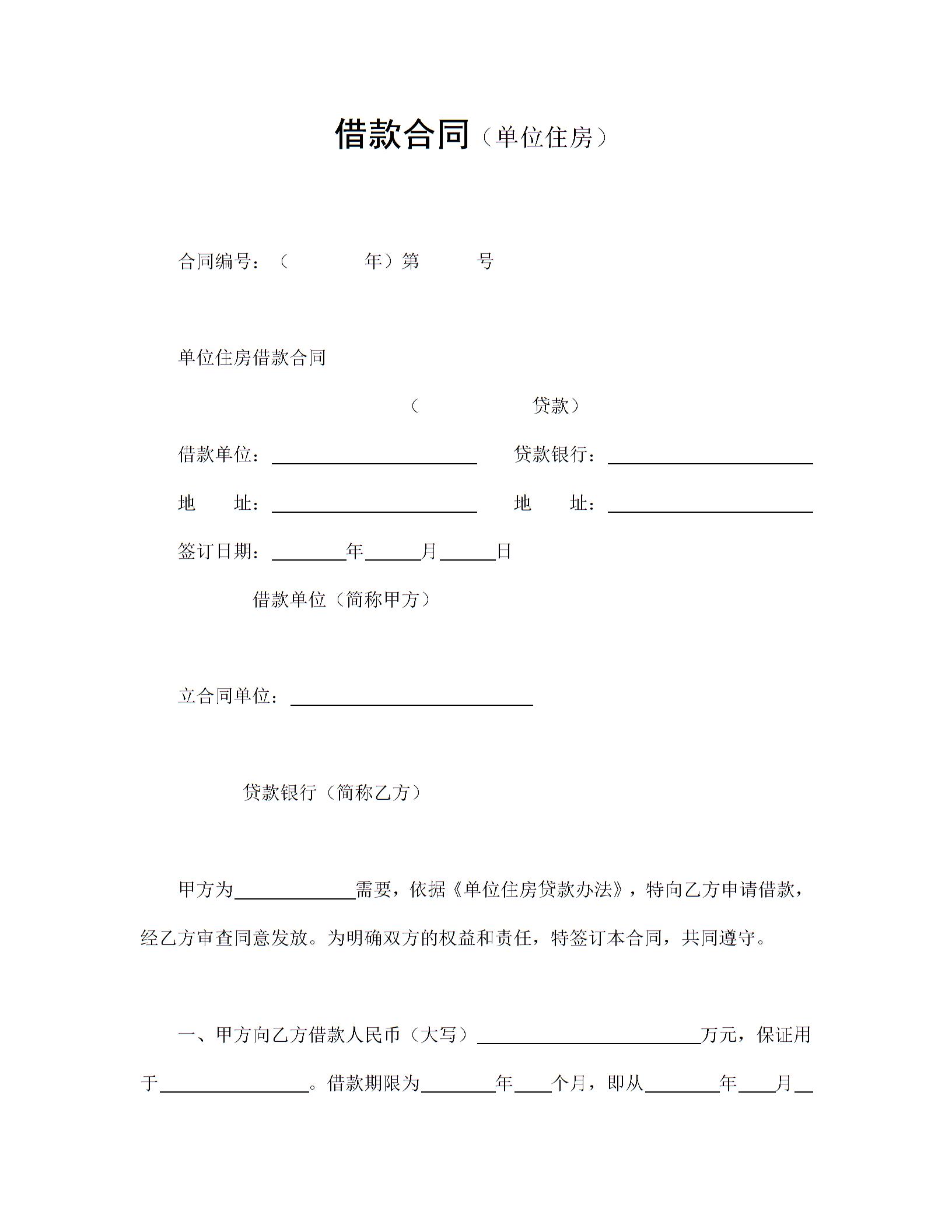 借款合同(单位住房)