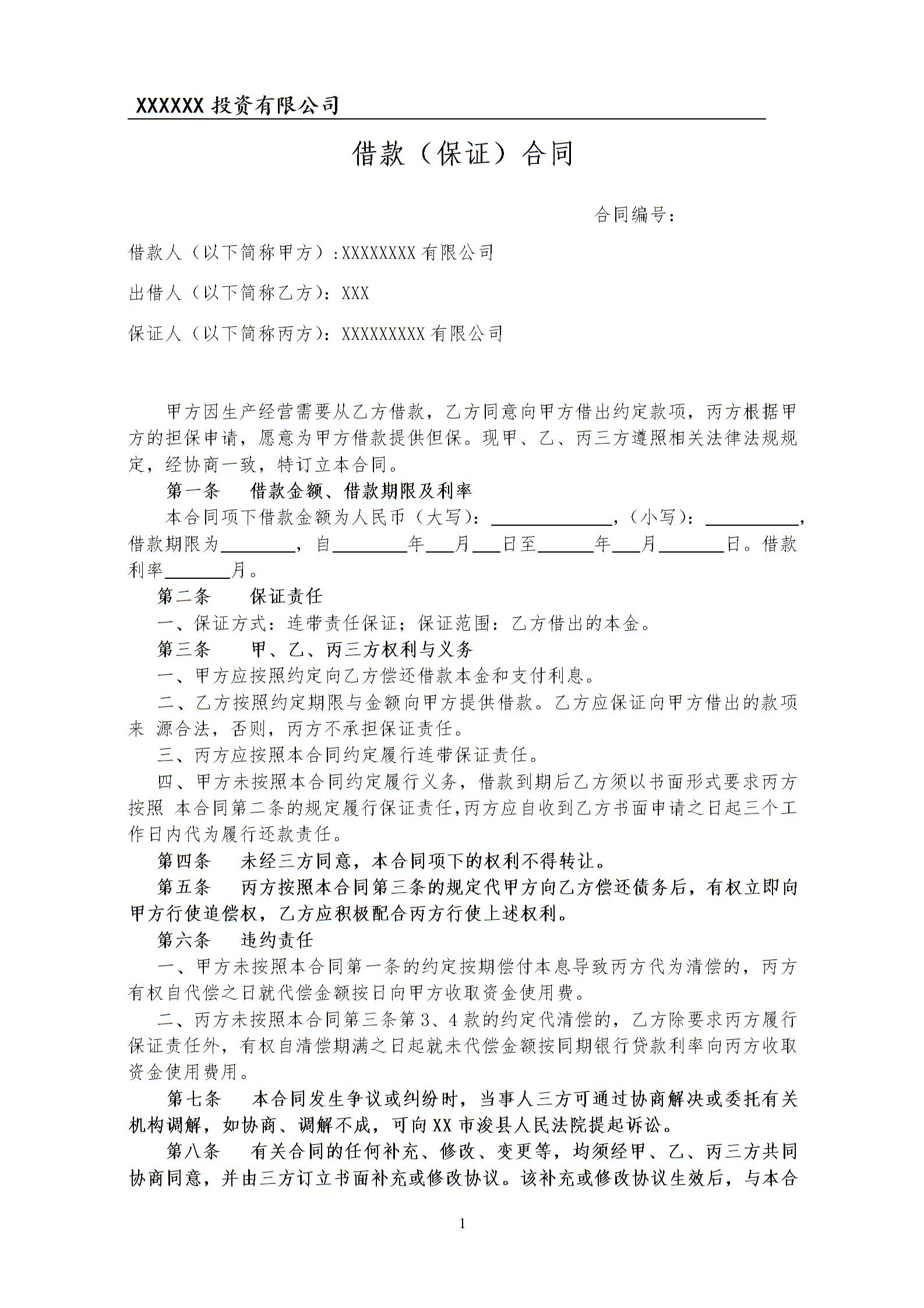 投资担保借款合同律师拟定版本