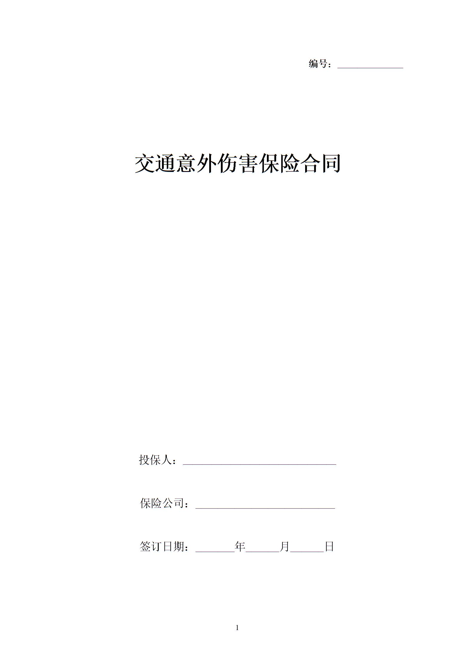 交通意外伤害保险合同协议书范本