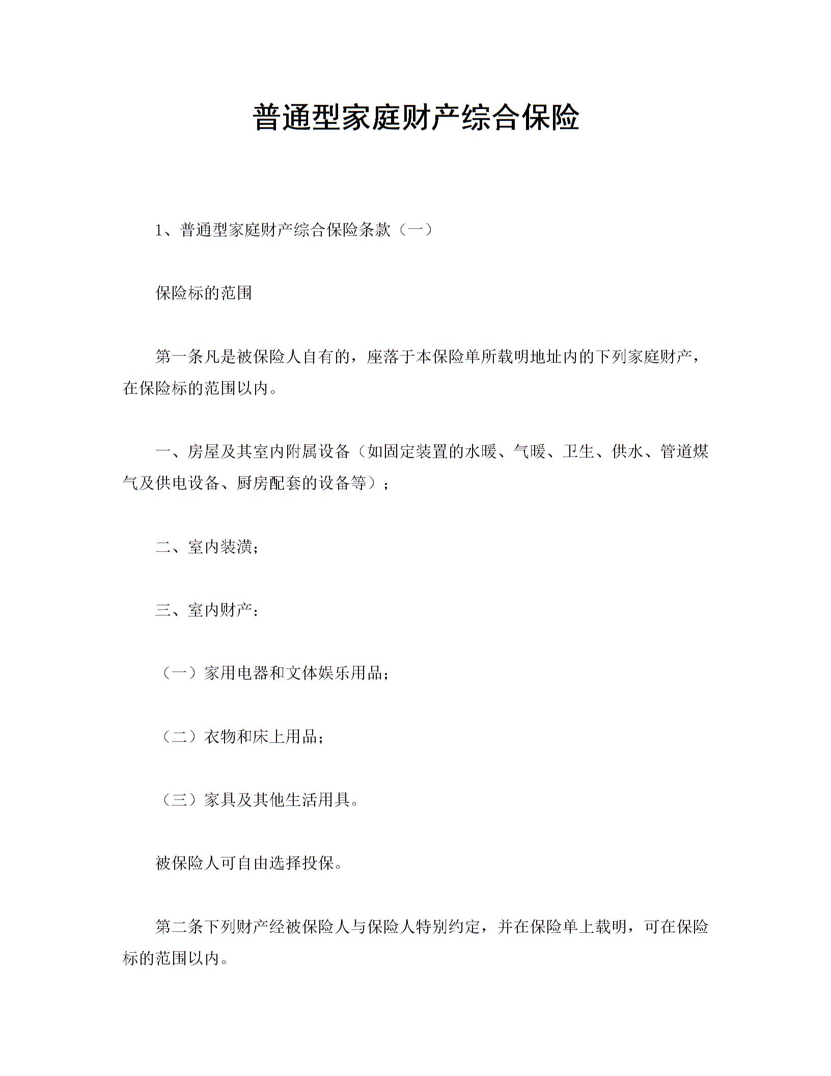 普通型家庭财产综合保险1