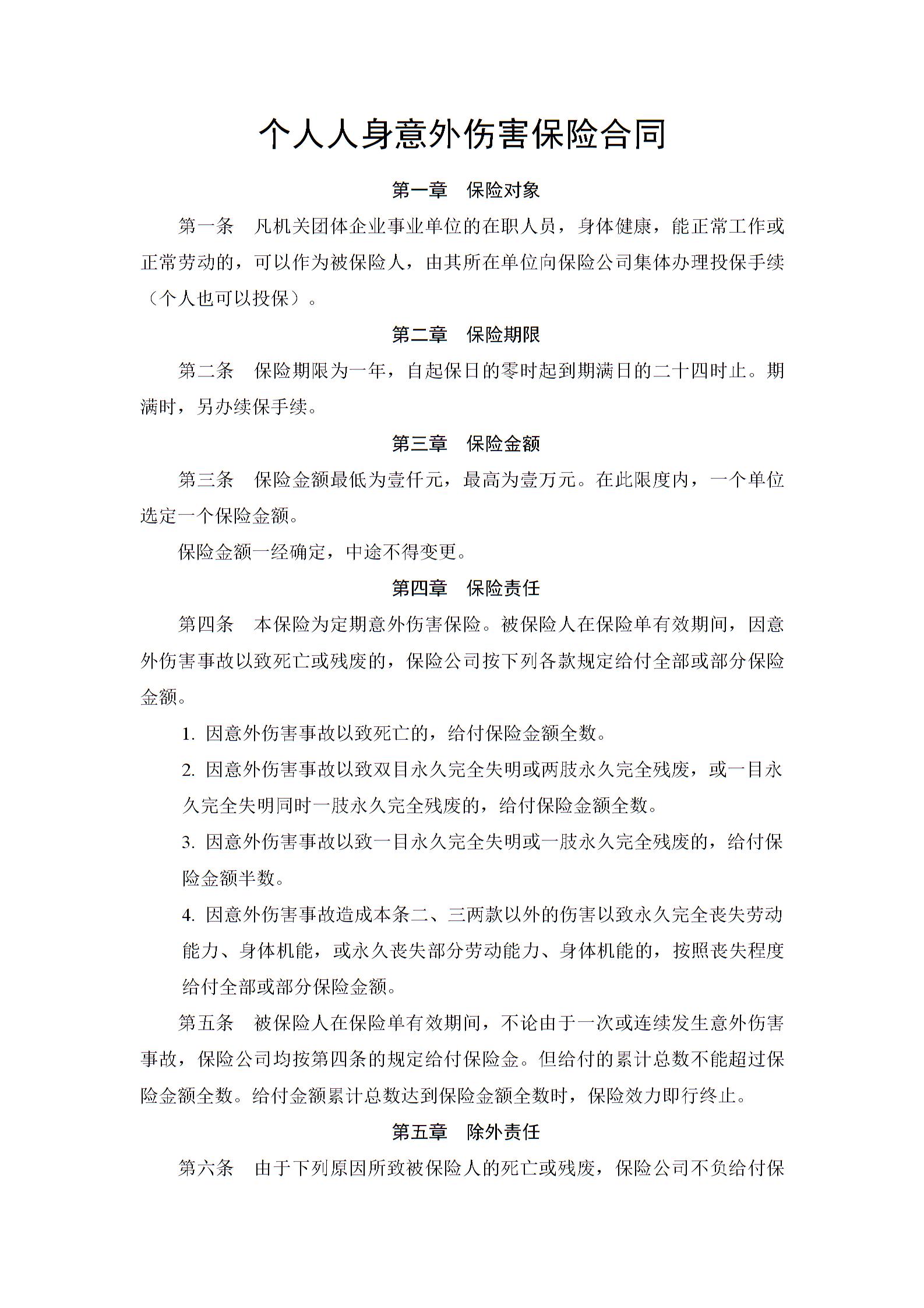 个人人身意外伤害保险合同