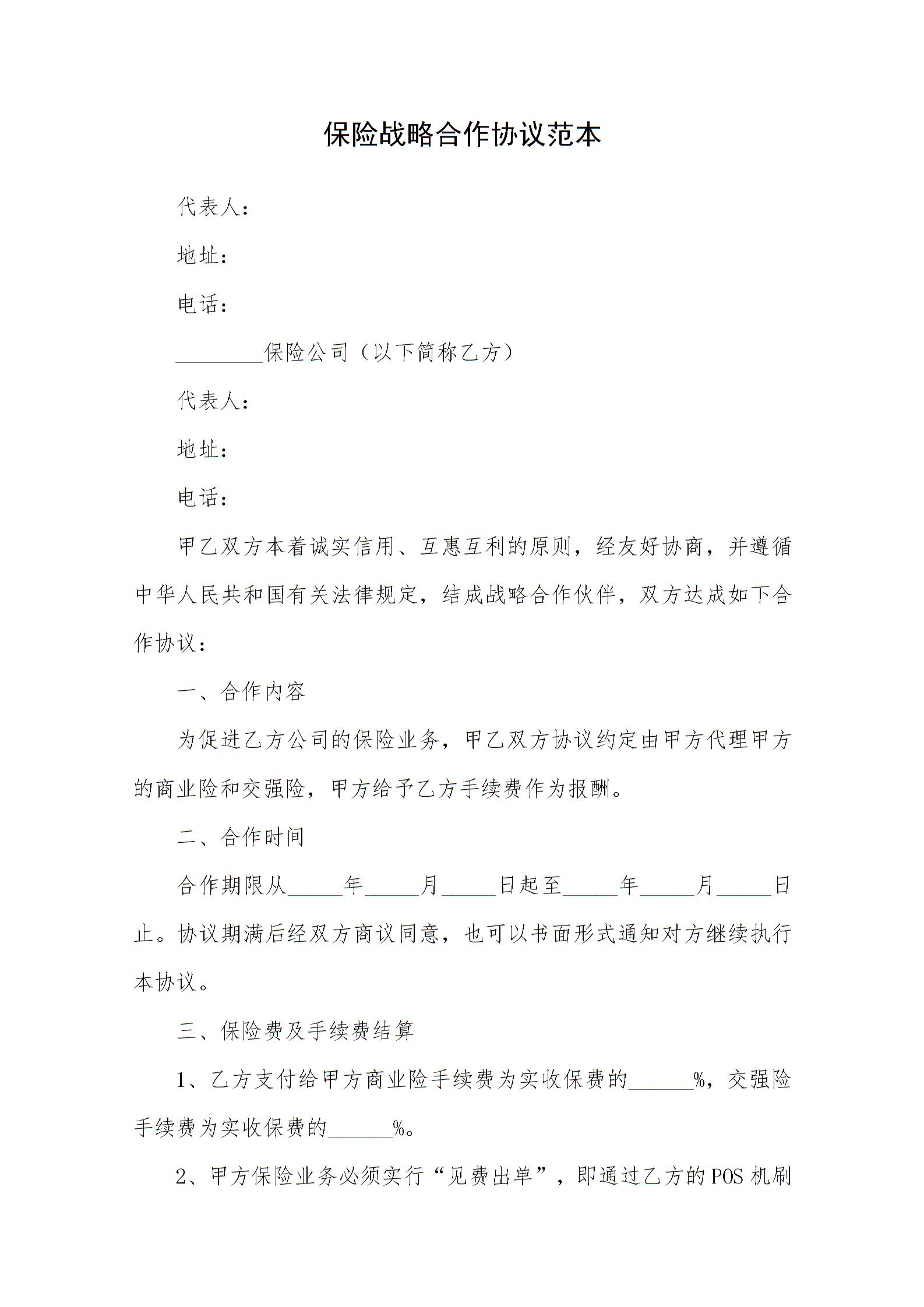 保险战略合作协议范本