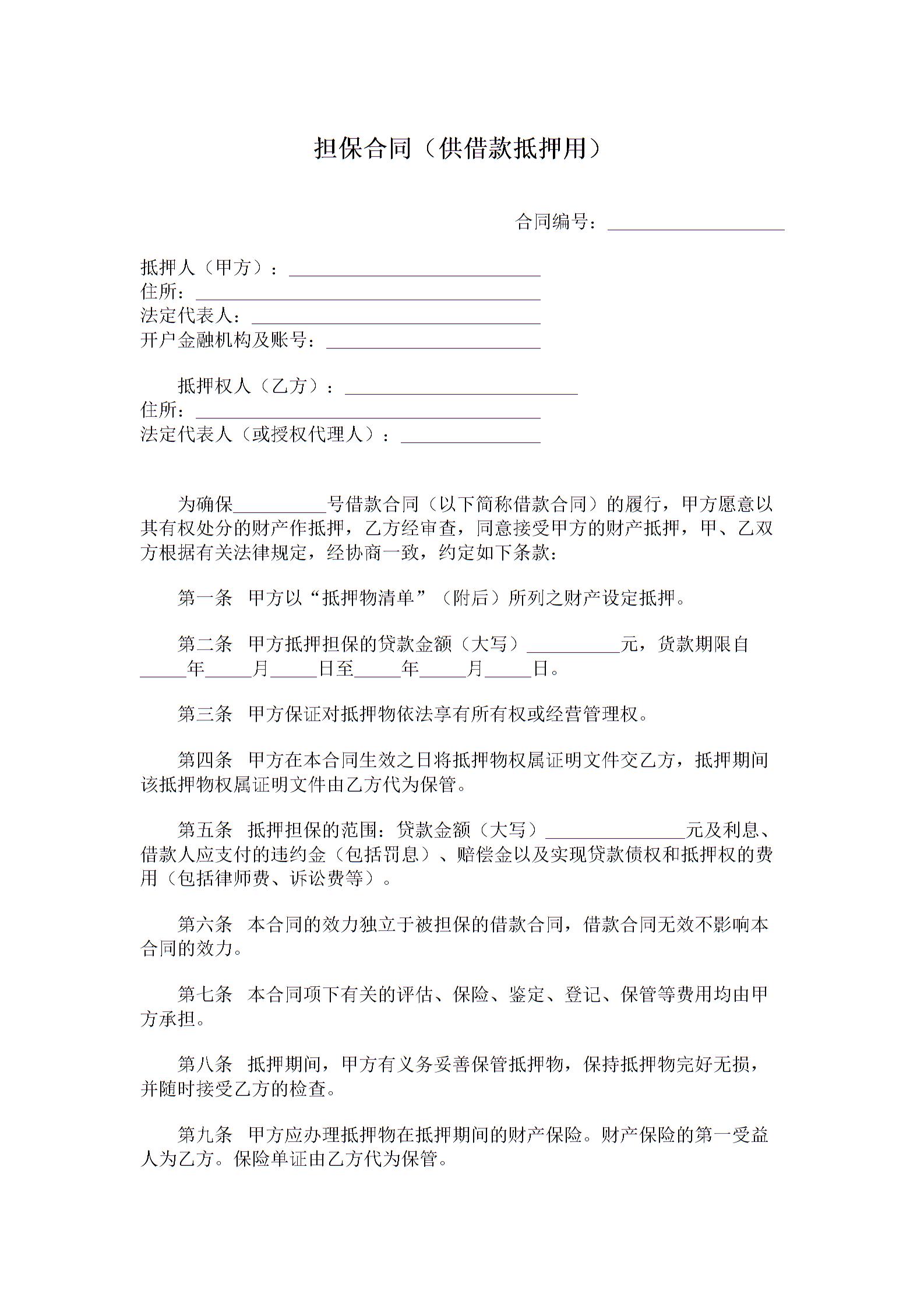 担保合同模板