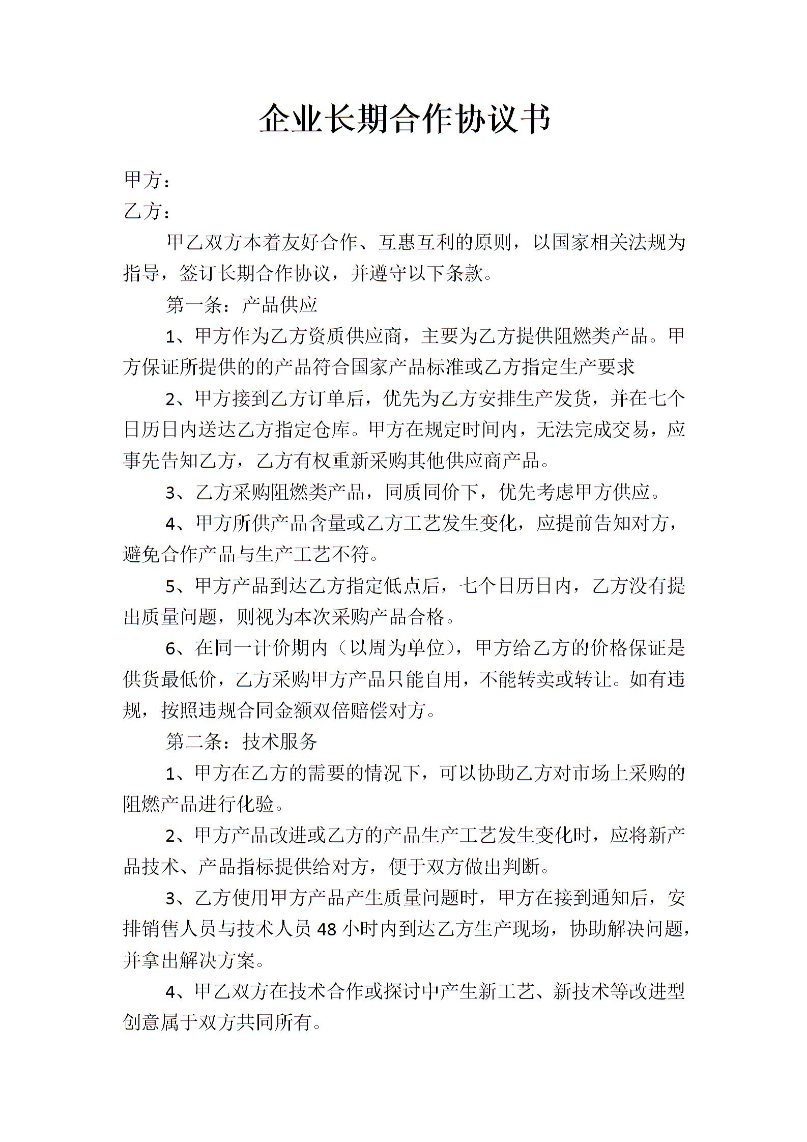 企业长期合作协议书
