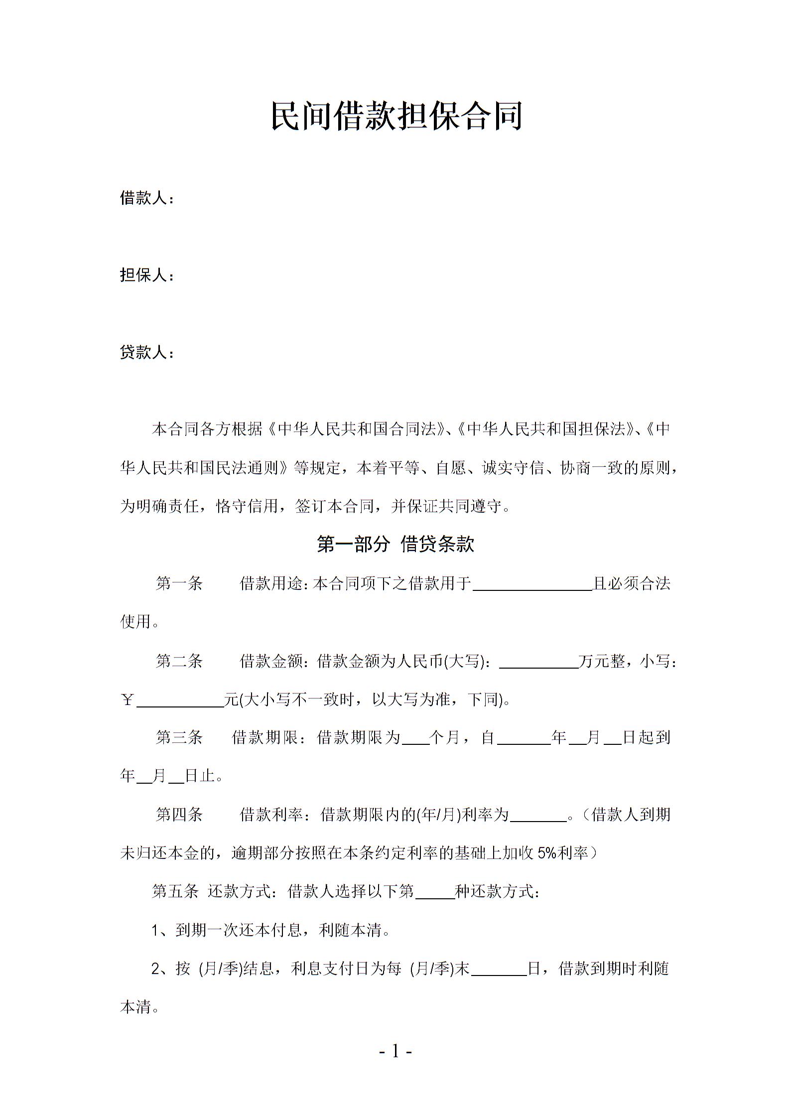 民间借贷担保借款合同