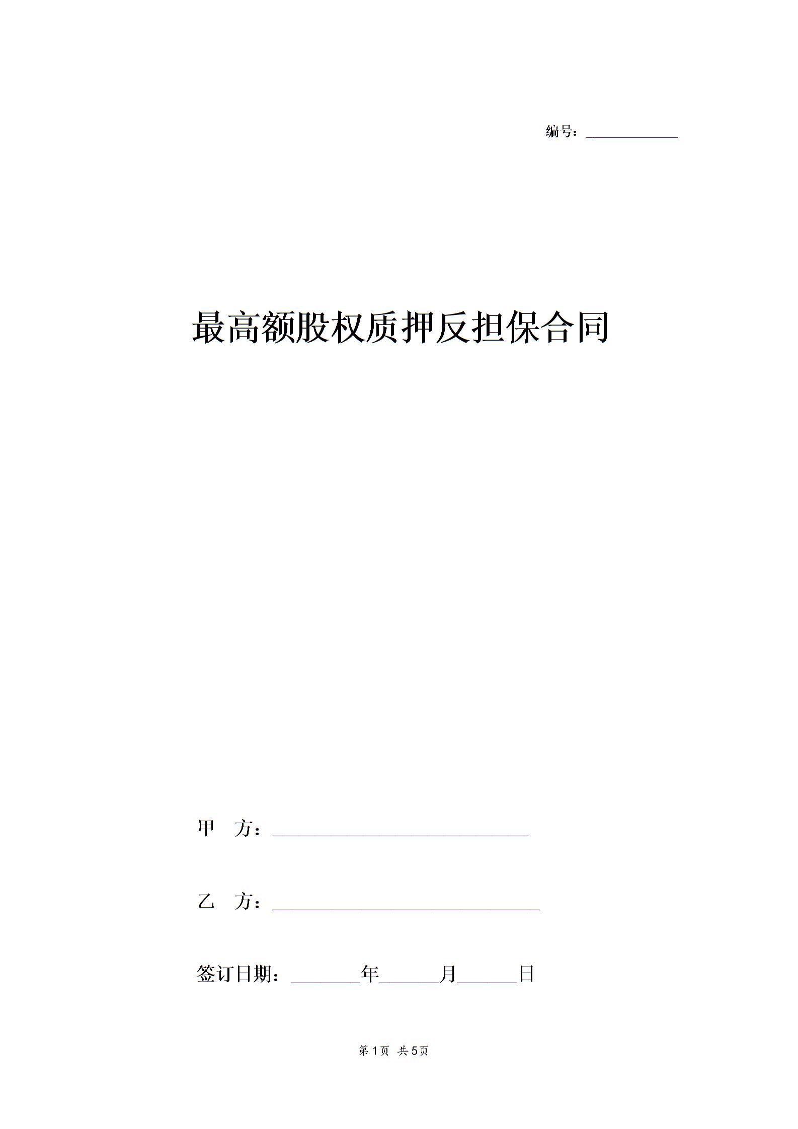最高额股权质押反担保合同