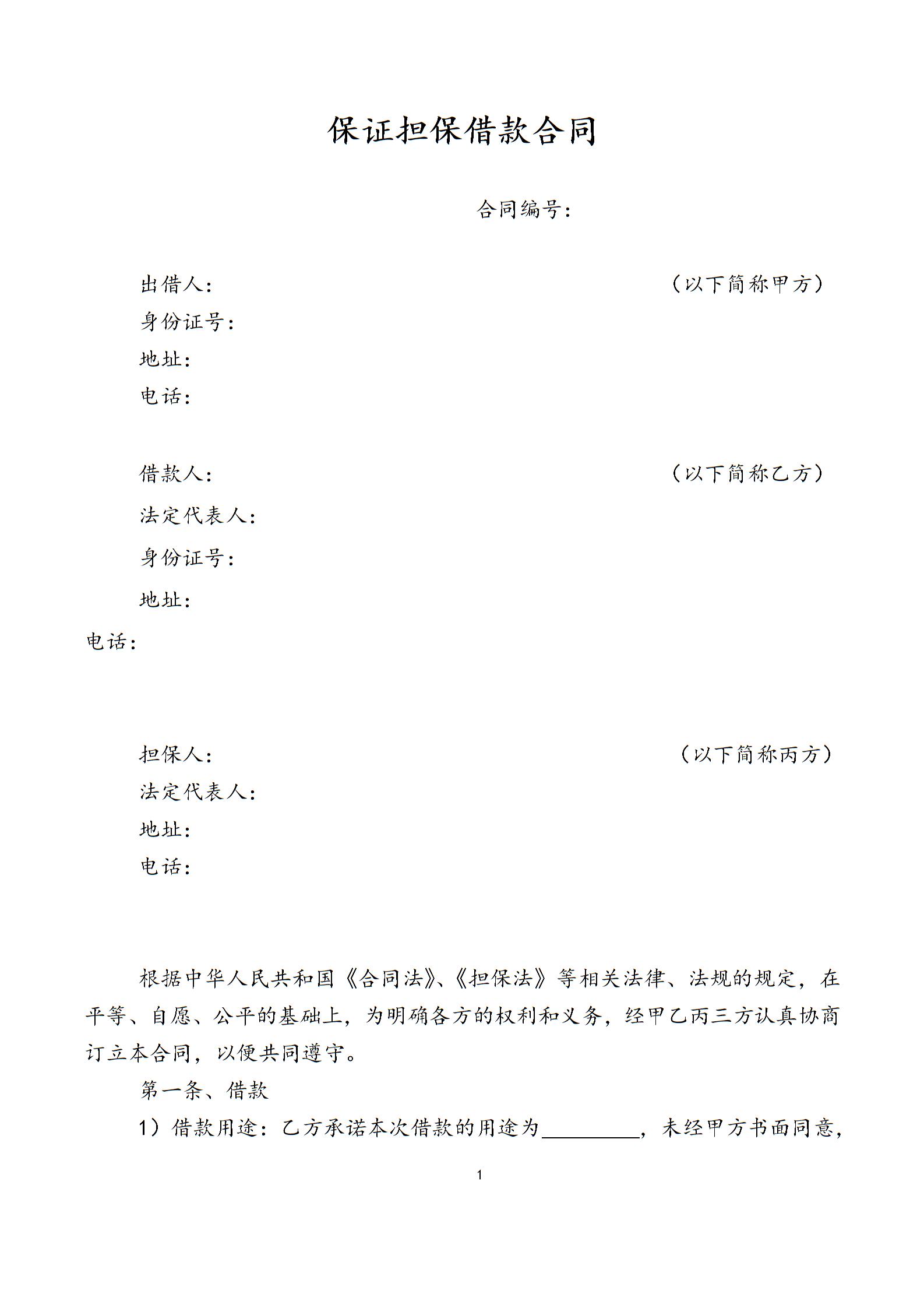 保证担保借款合同律师拟定版本