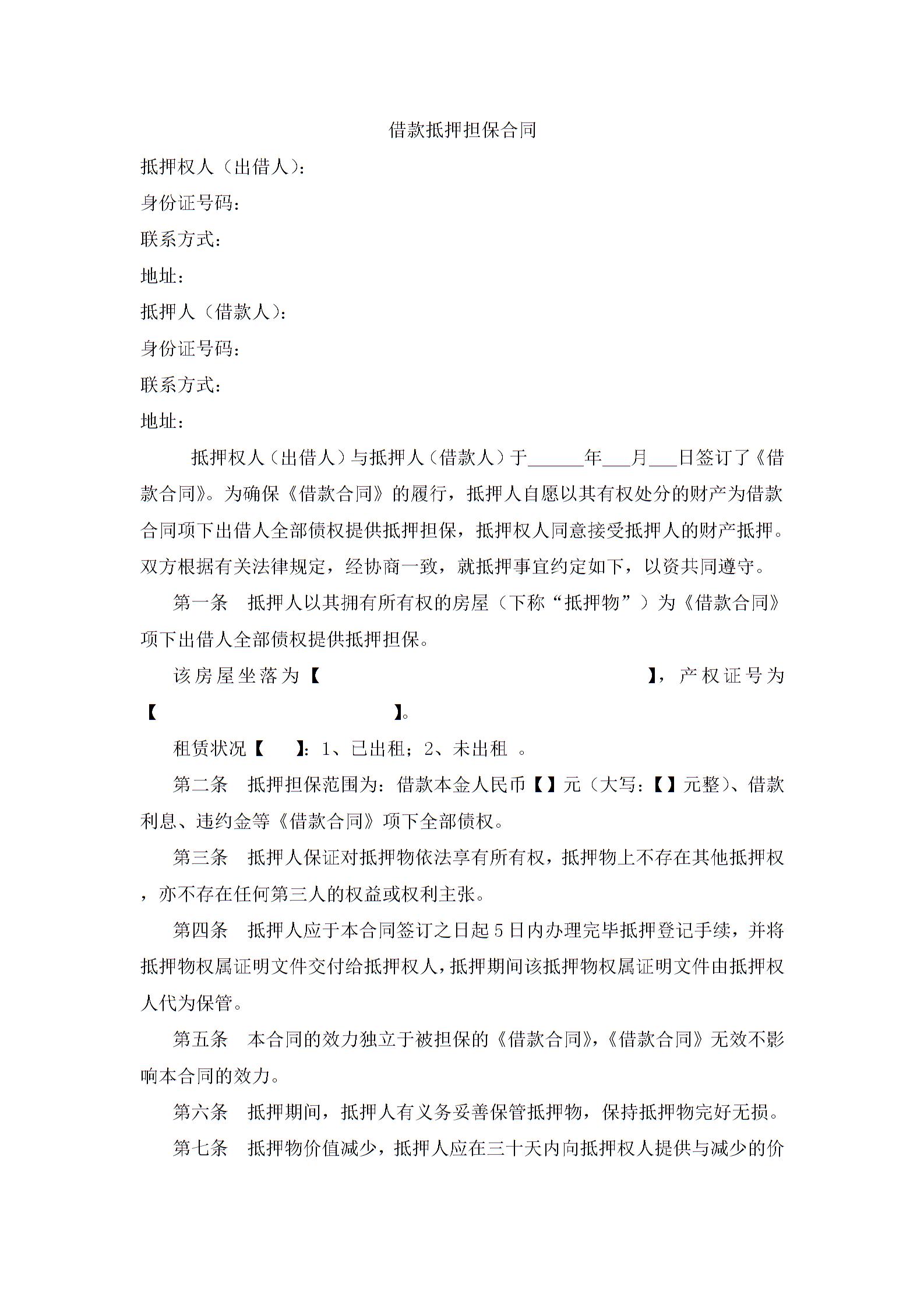 借款抵押担保合同2