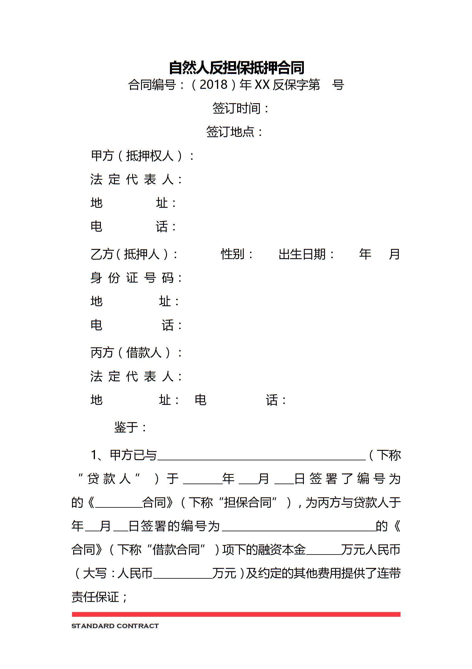 自然人反担保抵押合同