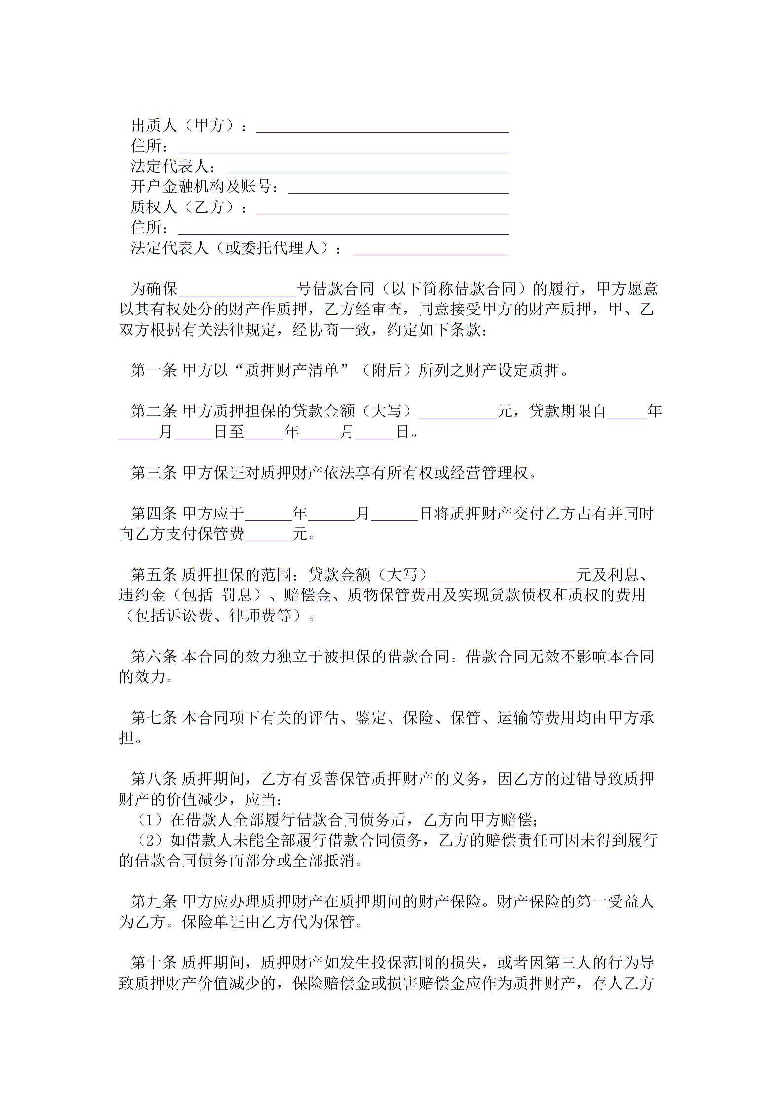 质押担保合同1