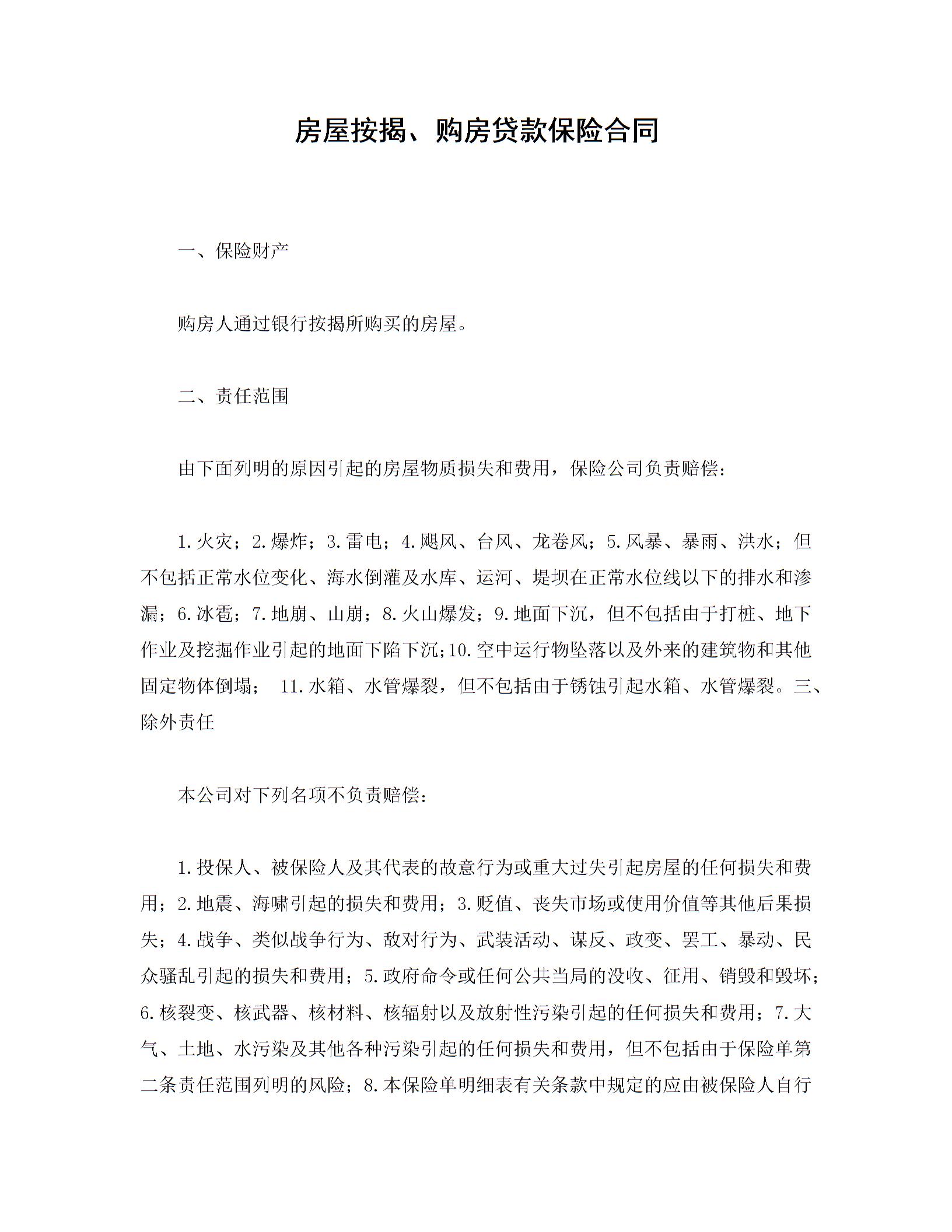 房屋按揭、购房贷款保险合同2