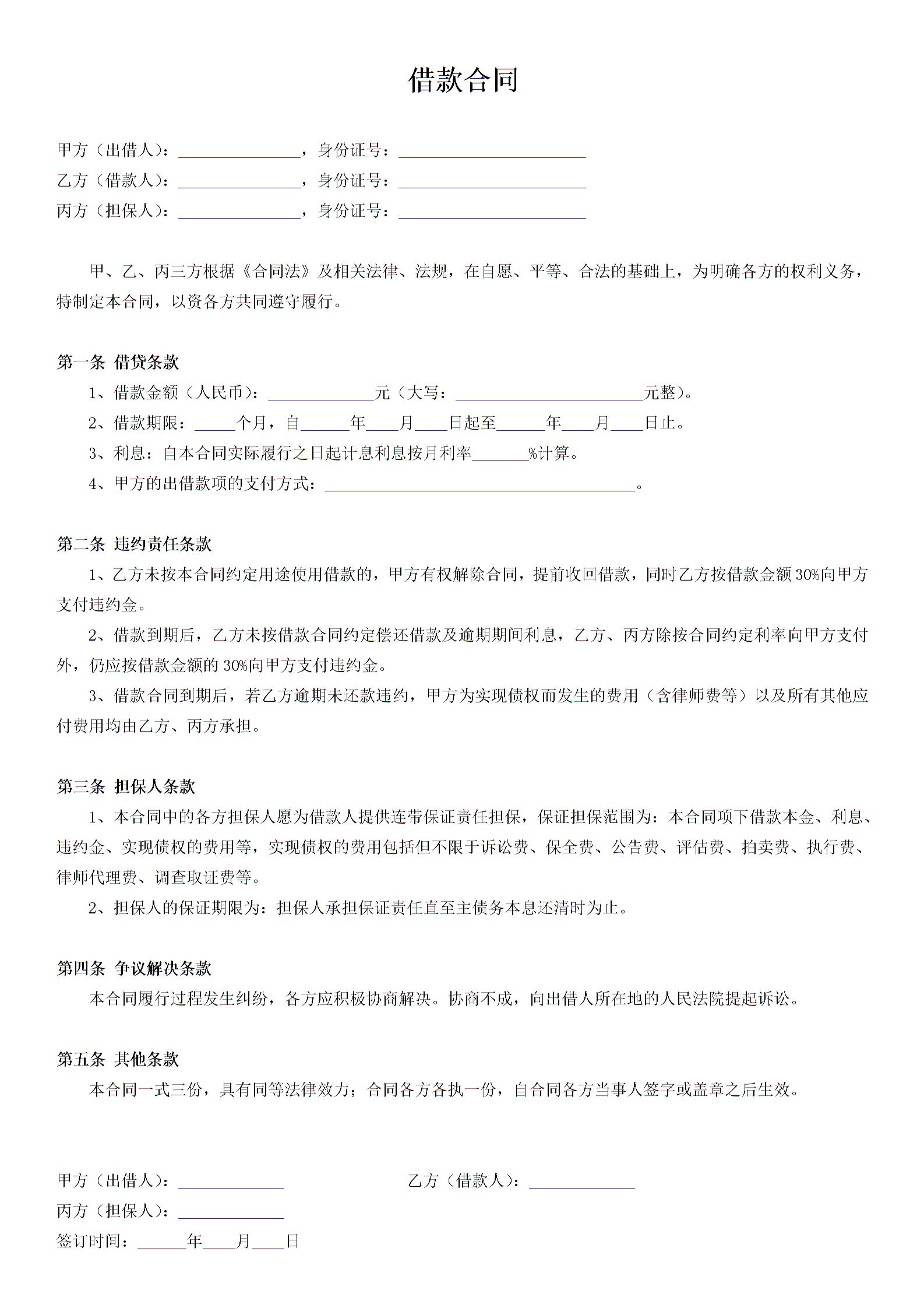借款合同(有担保人)