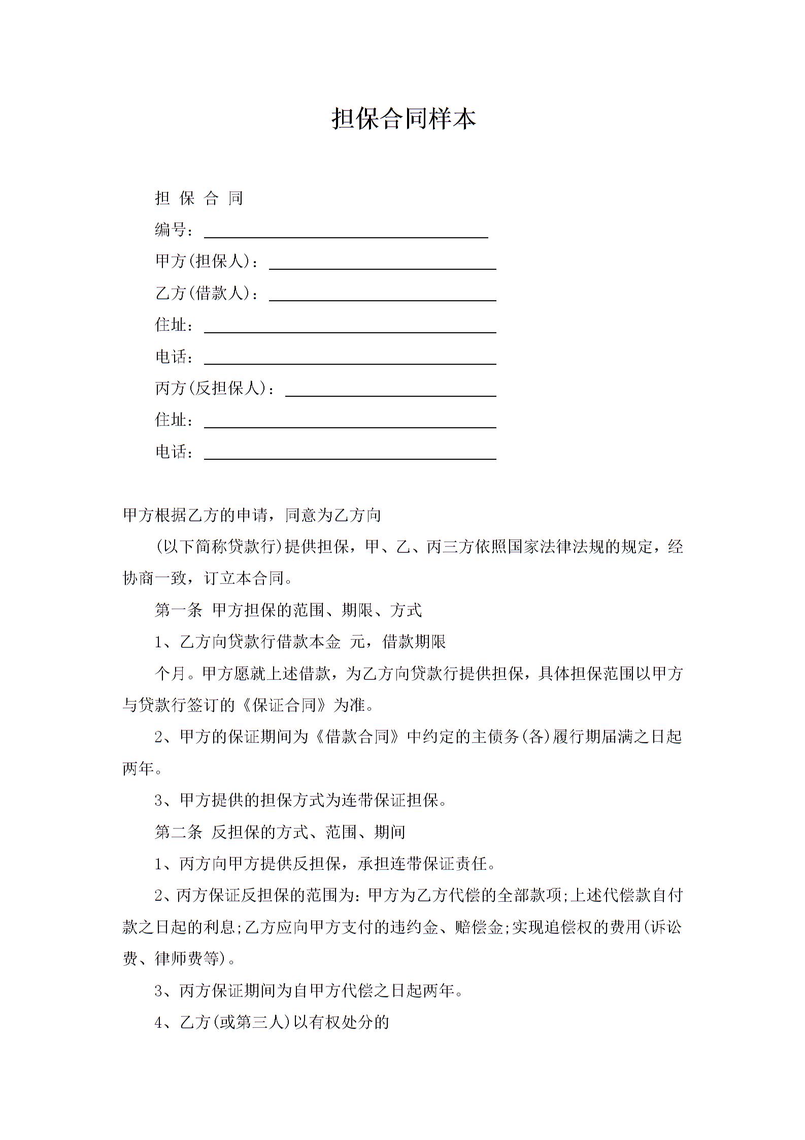 担保合同模板