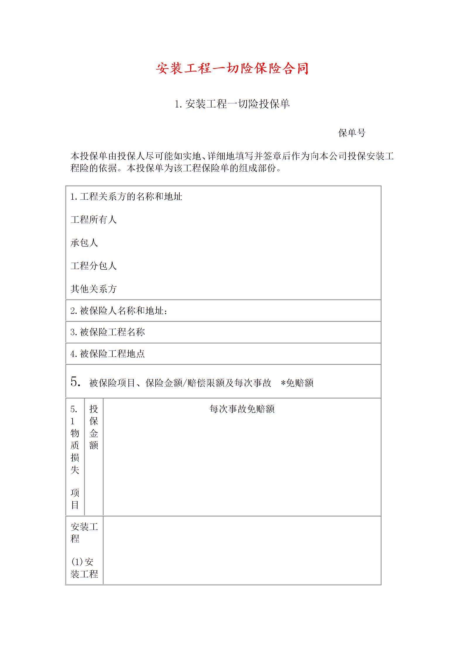 安装工程一切险保险合同1