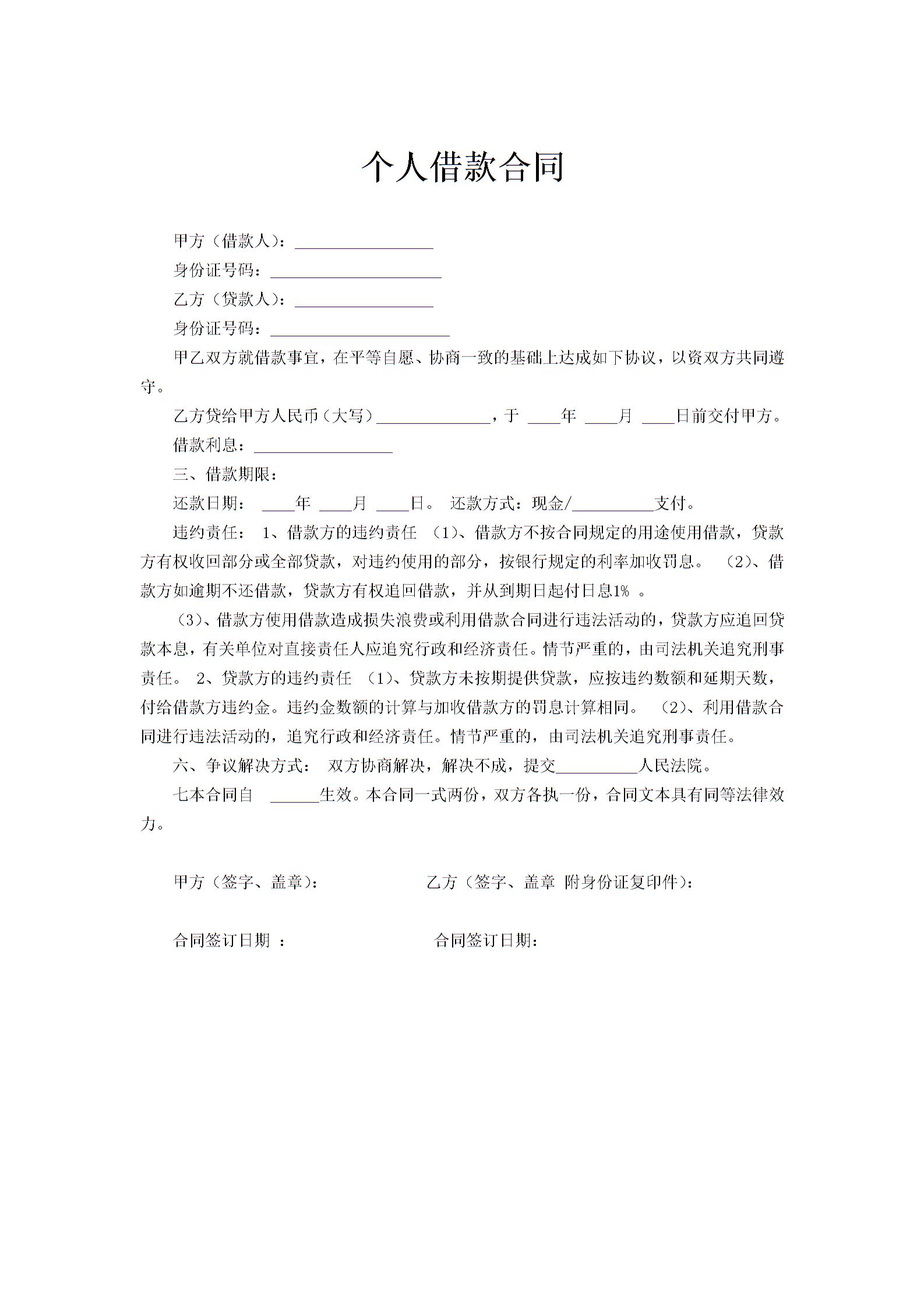 个人借款合同范文