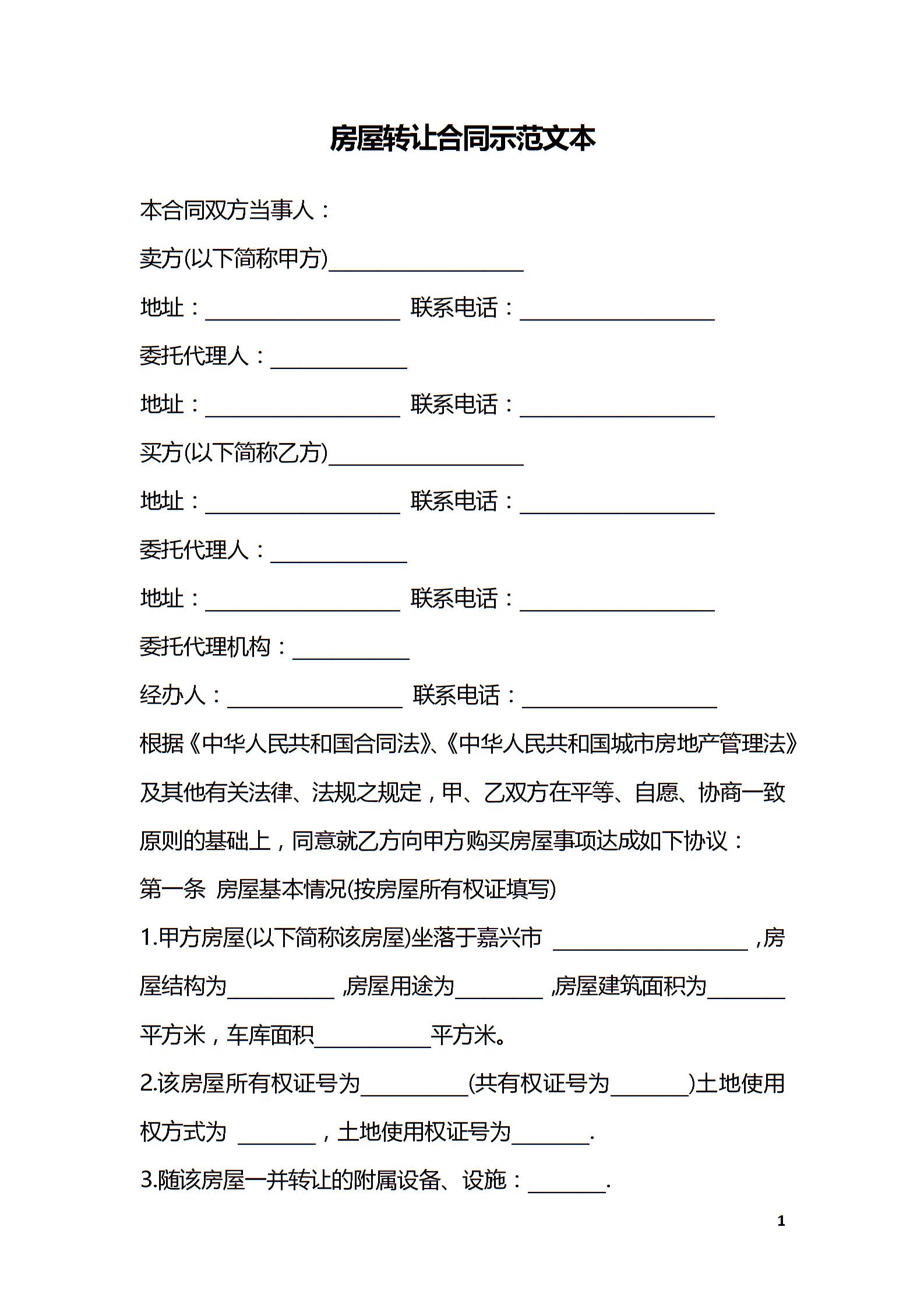 房屋转让合同示范文本