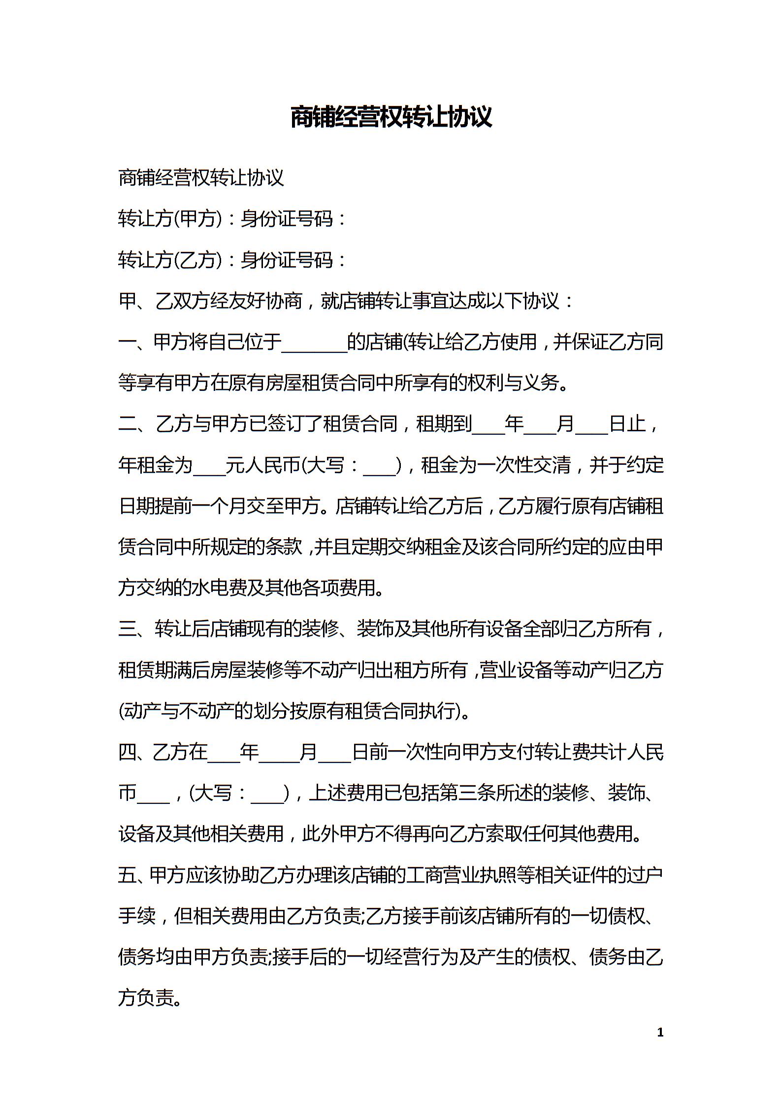 商铺经营权转让协议