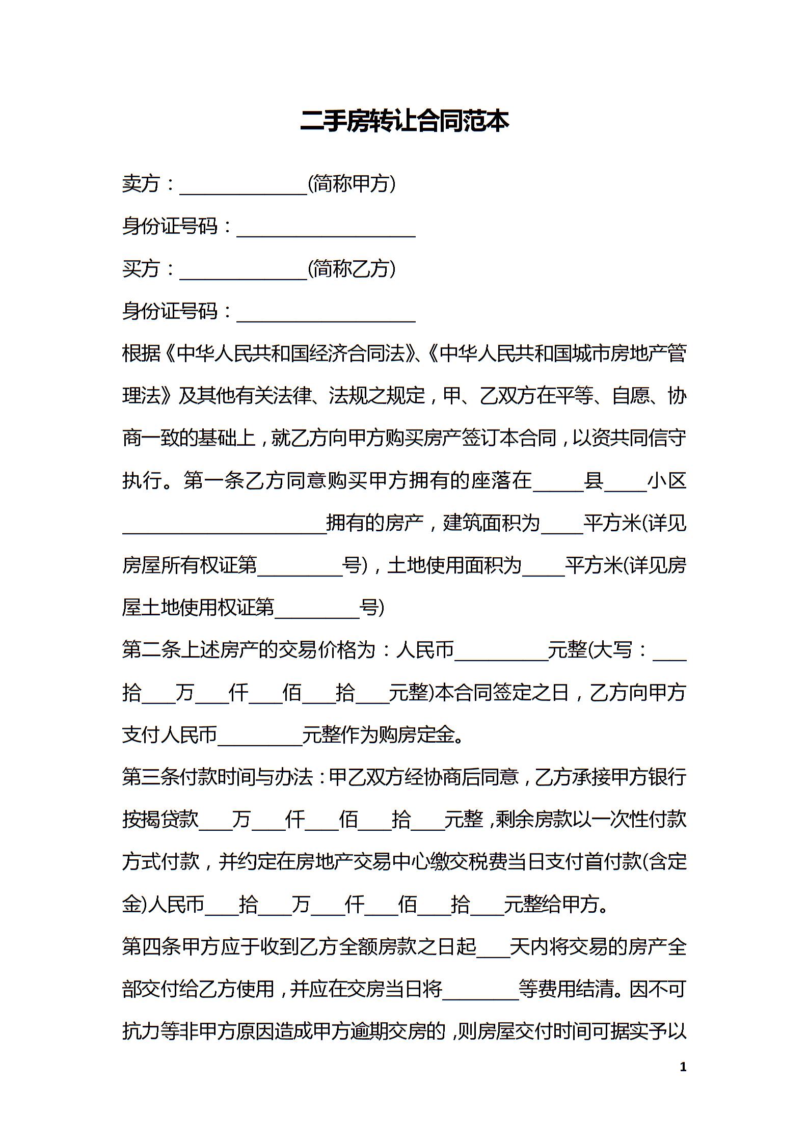 二手房转让合同范本