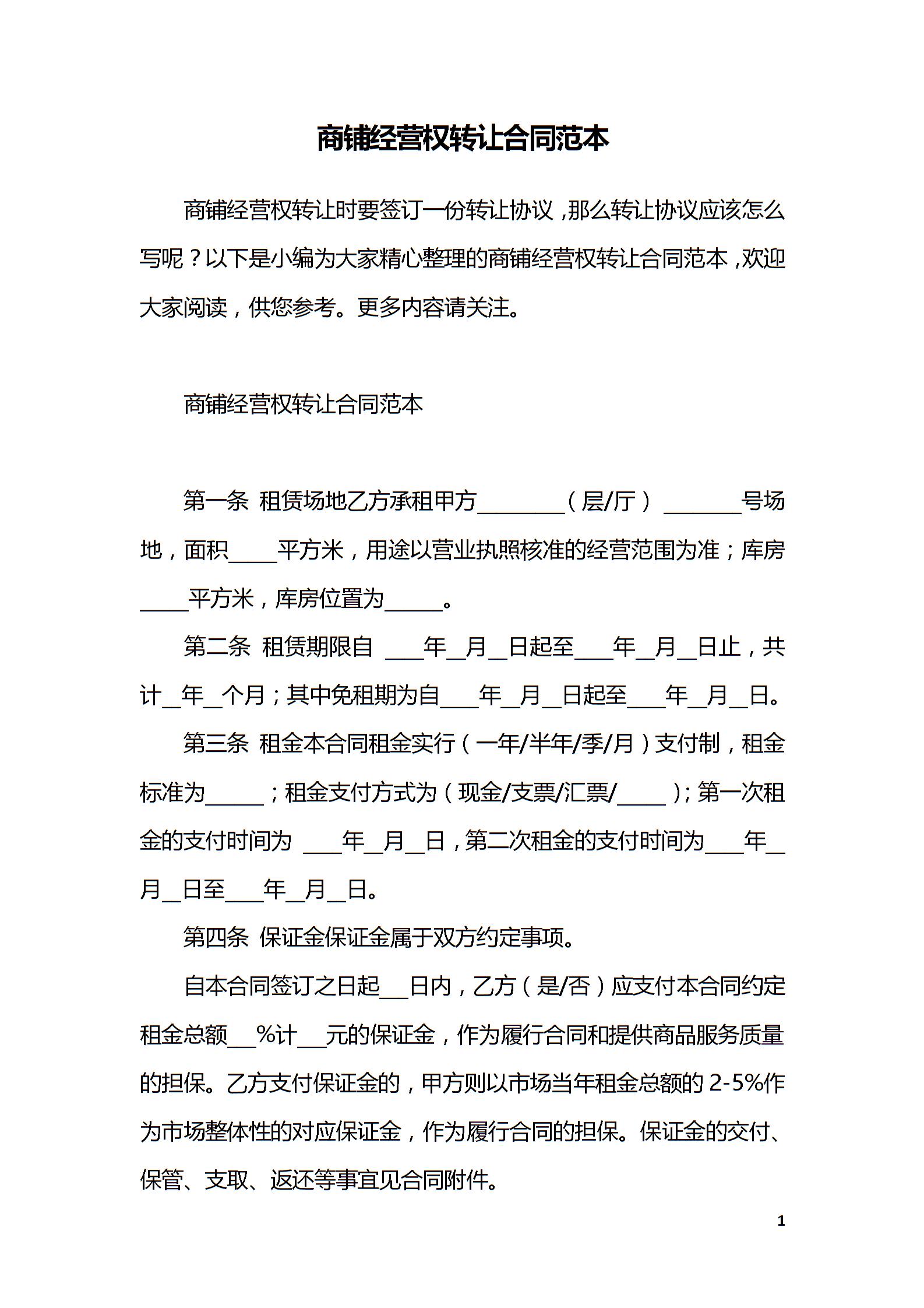 商铺经营权转让合同范本