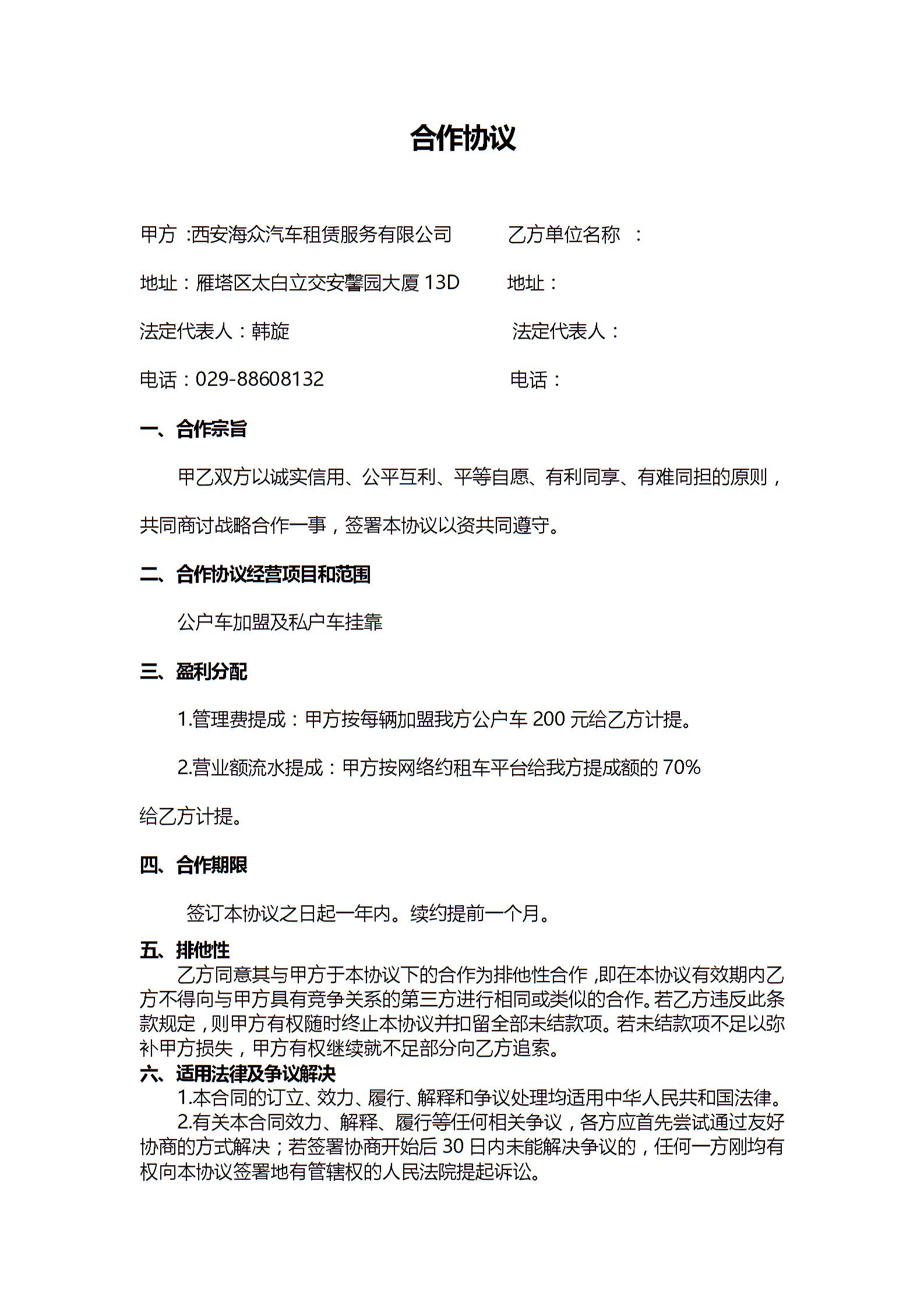 更多合作协议下载