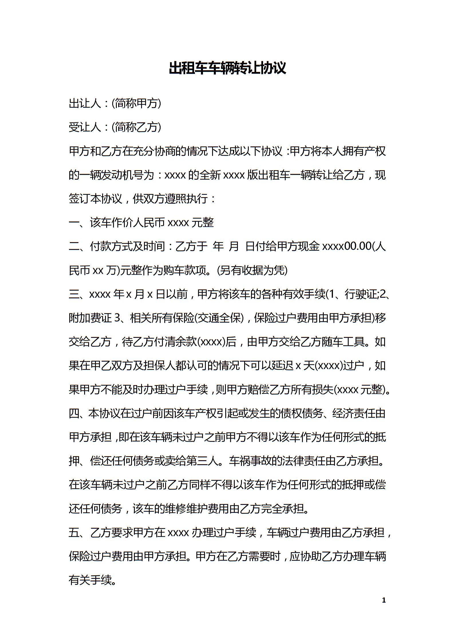 出租车车辆转让协议