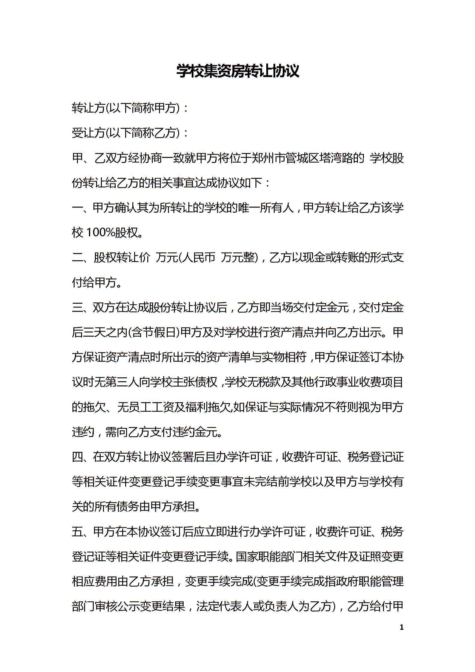 学校集资房转让协议