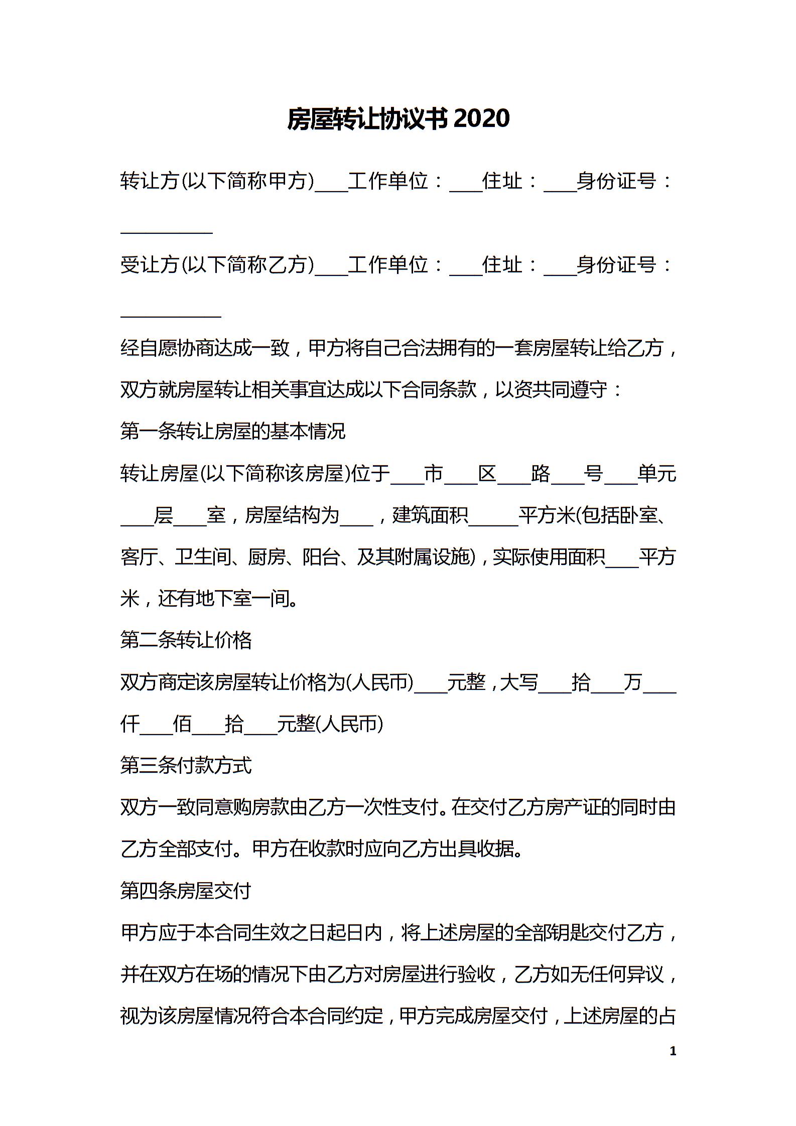房屋转让协议书2020