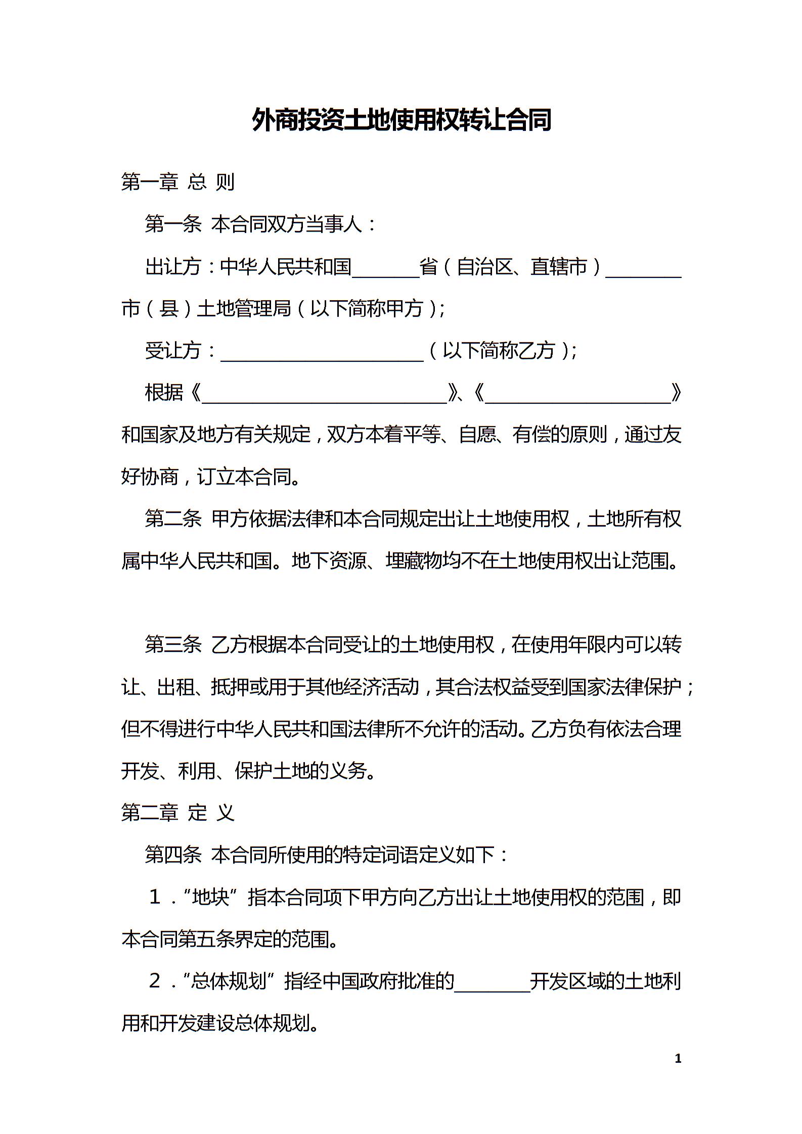 外商投资土地使用权转让合同